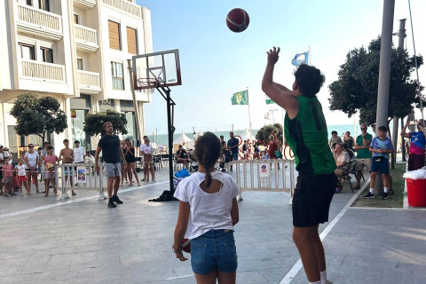 La plaza Jeús Nazareno, en plena Costilla, se convirtió en la tarde de ayer en el escenario del primer Torneo de Triples de Baloncesto “Villa de Rota”, una cita que congregó a más de 80 participantes de todas las edades y que se desarrolló en un ambiente deportivo y festivo.