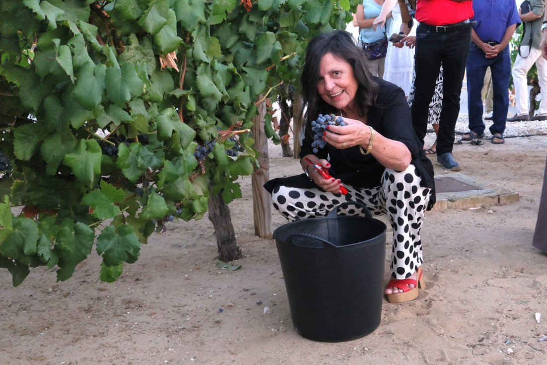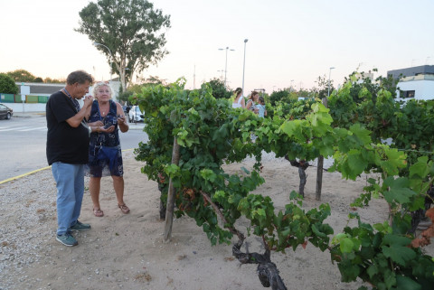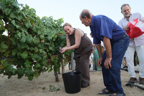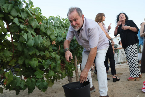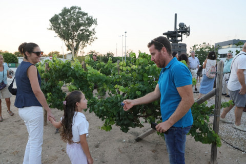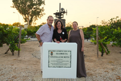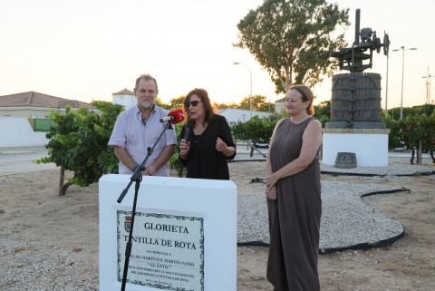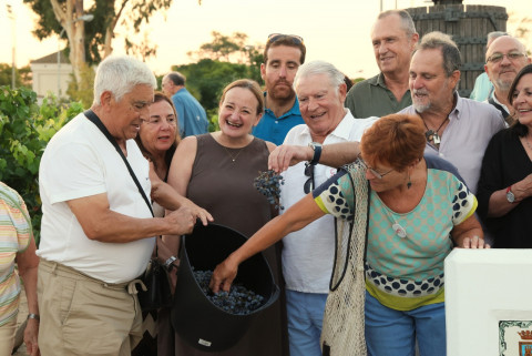La rotonda dedicada a la Tintilla de Rota fue escenario y protagonista un año más de la vendimia simbólica que impulsa la asociación 'T de Tintilla' a modo de promoción y homenaje a la uva y vino más emblemáticos de la localidad.