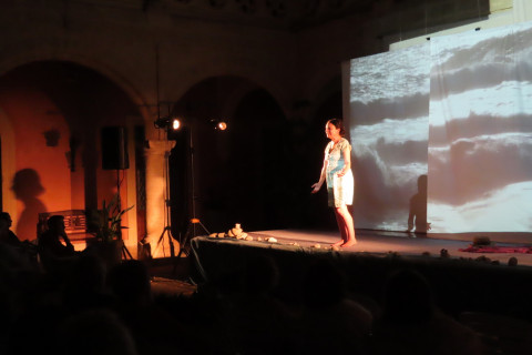 El patio del Palacio Municipal Castillo de Luna volvió a ofrecer esta cita que combinaba múltiples formatos y disciplinas en una obra única diseñada para descubrir y mostrar la poesía, la fotografía, las artes escénicas y el audiovisual a través de un “Mar recomenzado”.