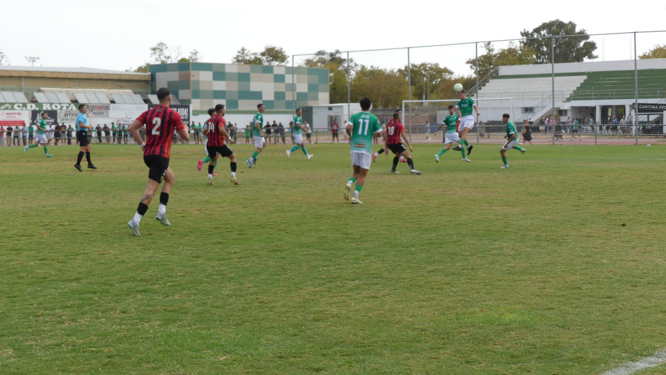 La liga en la Primera Andaluza ha comenzado en Rota este domingo, 7 de septiembre, con mucha emoción ya que la suerte ha querido que el primer partido para inaugurar esta campaña 2025/26 enfrentara a los dos equipos locales rivales, el C.D. Rota y la U.D. Roteña. Por eso, aparte de por ser el inicio de temporada, las gradas del "Antonio Pazos Monago" se han visto esta mañana a las 12 del mediodía con más ambiente de lo habitual, con muchos aficionados que han querido disfrutar no solo del primer partido sino además, animar a los suyos ante un derbi que desde el minuto uno ha empezado con mucha intensidad.