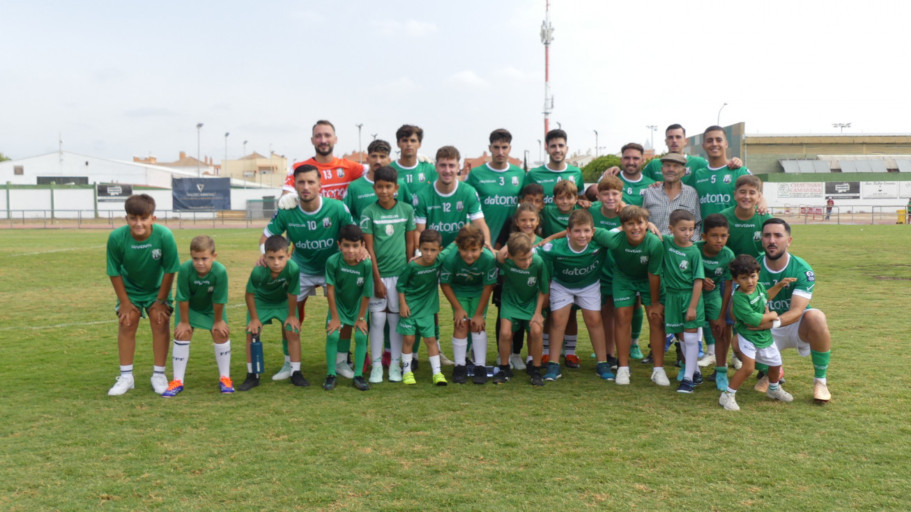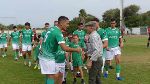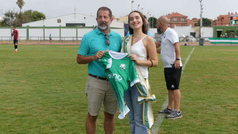 Antes de iniciar el partido, el presidente del Rota ha aprovechado para entregar una camiseta del equipo a la joven que les representará este año como dama del Rosario en las fiestas patronales.