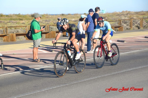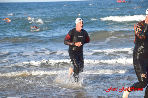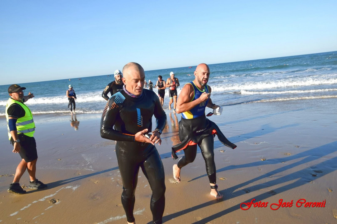 La jornada, disputada con unas condiciones ideales y un escenario como la playa de Camposoto comenzó con el circuito de natación, que fue algo duro por el viento de poniente e ir contra corriente casi todo el tiempo; se pasó posteriormente al circuito de bici que fue muy llano y terminó con la carrera a pie que se hizo dura a la ida con el viento en contra y muy rápida a la vuelta hacia meta.