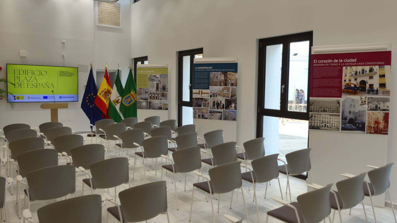 La rehabilitación del edificio de la plaza de España deja unas modernas dependencias administrativas con carácter histórico