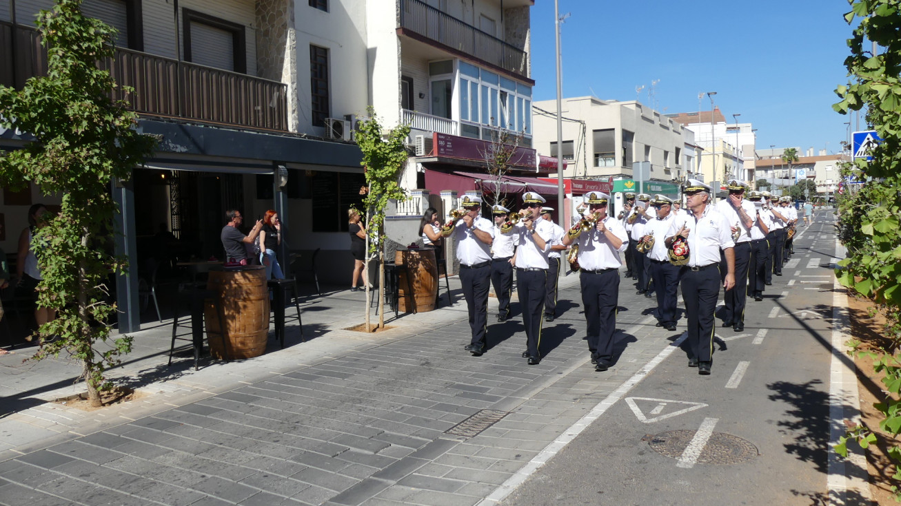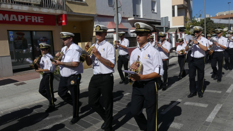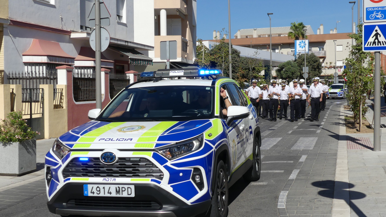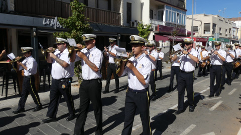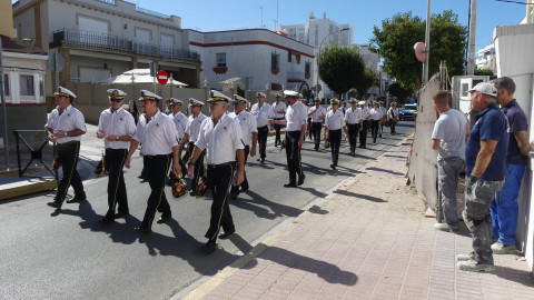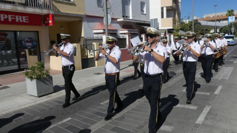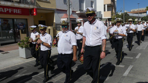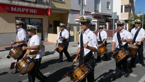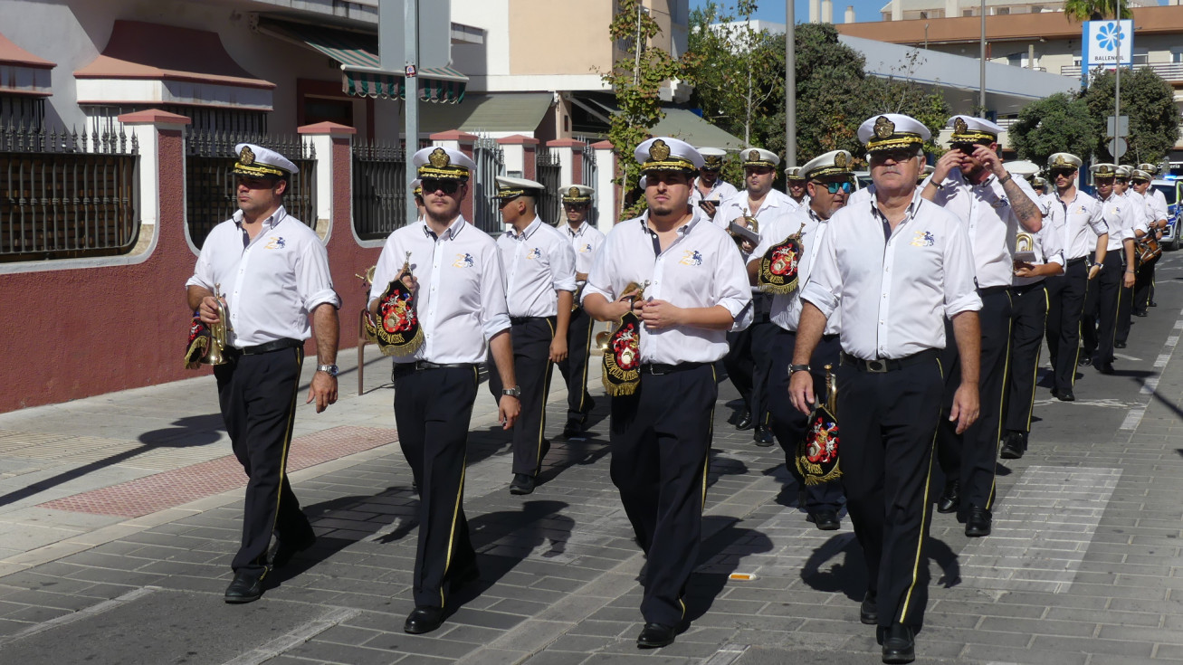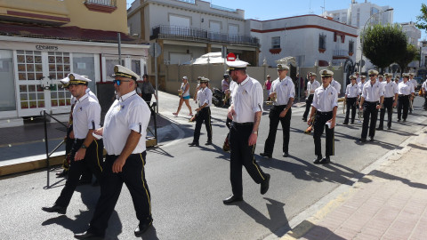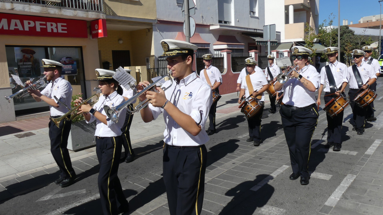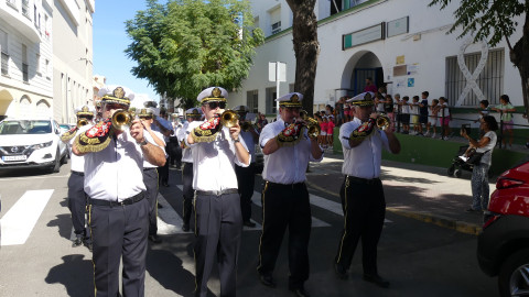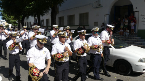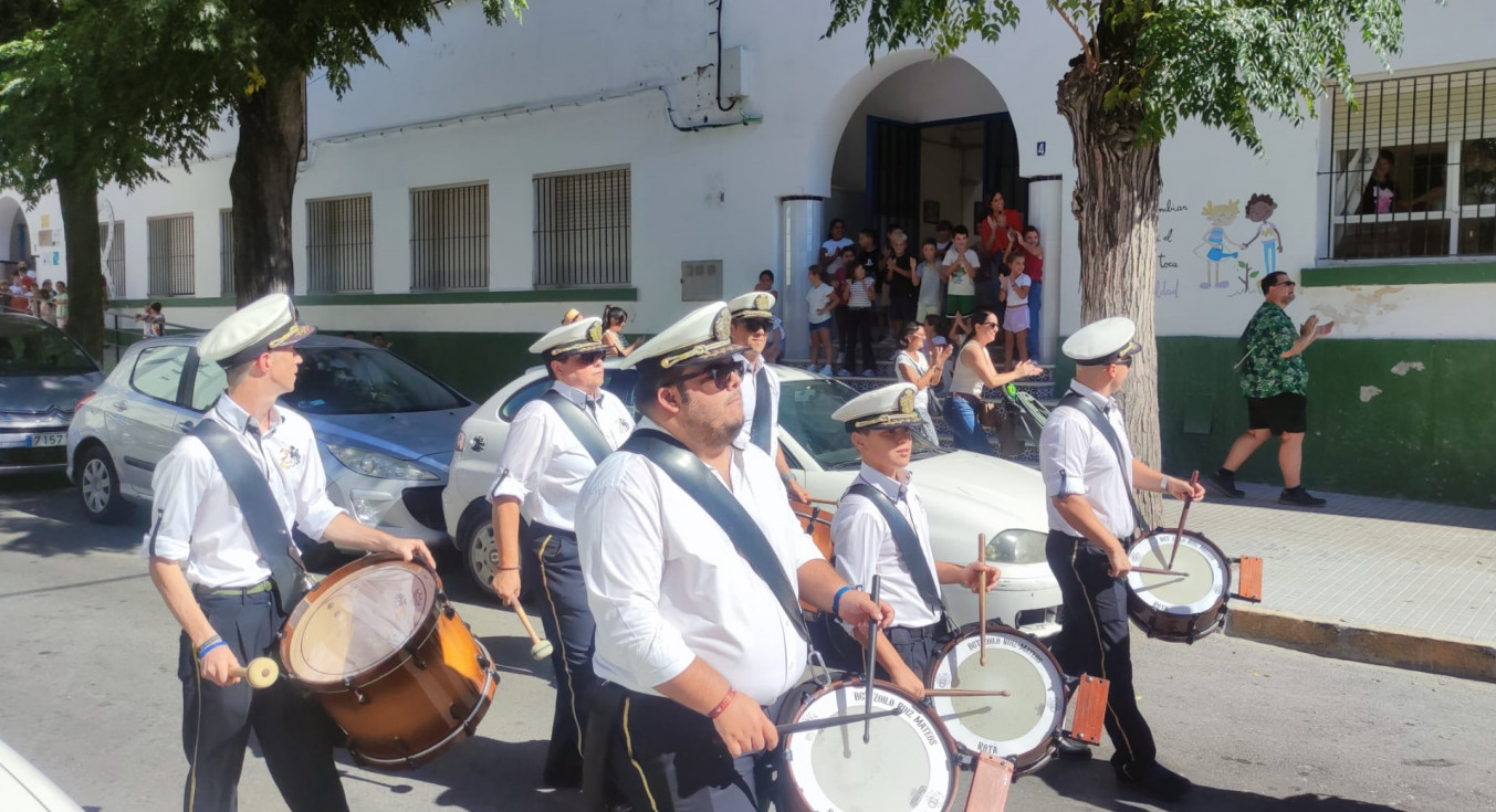 Los músicos han salido a las 12 del mediodía de la calle Neptuno y han recorrido un itinerario amplio po distintas calles y avenidas mientras han dido tocando algunas piezas para llamar la atención de los roteños y anunciar con ello, que Rota se viste de fiesta en los próximos días en honor a Nuestra Señora del Rosario, la patrona de la villa.