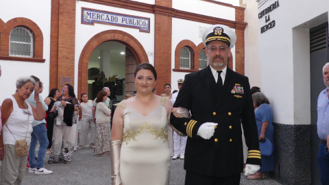 Fotos, saludos y algo de alboroto han sido la previa al inicio del paseo que ha llevado a las damas hasta el Castillo de Luna donde han sido recibidas y saludadas por el alcalde de Rota, Javier Ruiz, y miembros de la Corporación municipal. Minutos después, sobre las 21.00 horas, ha dado comienzo el acto central con la presentación una a una de las damas del Rosario que han ido ocupando su lugar en el escenario de la plaza Bartolomé Pérez, este año con una decoración renovada.