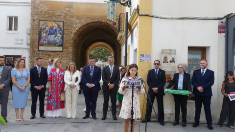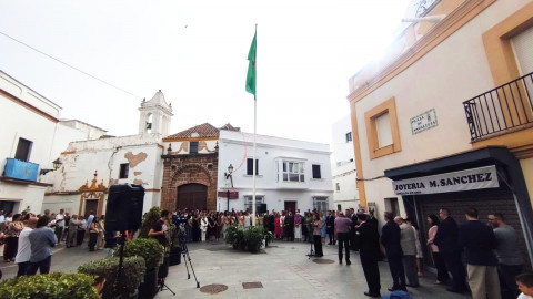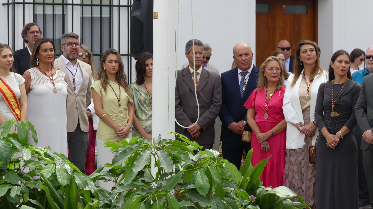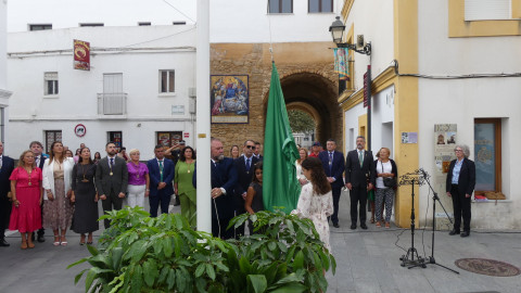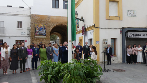En esta ocasión han sido Valeria Neva Romero, de 5º de EPO del colegio Luis Ponce de León, y Loreto de Jove Rojo, de 2º ESO del colegio Pozo Nuevo. Las alumnas han portado la bandera y el ex trabajador municipal se ha encargado de elevarla a lo más alto del mástil mientras la banda municipal de música "Maestro Enrique Galán" tocaba los acordes del himno de Andalucía.