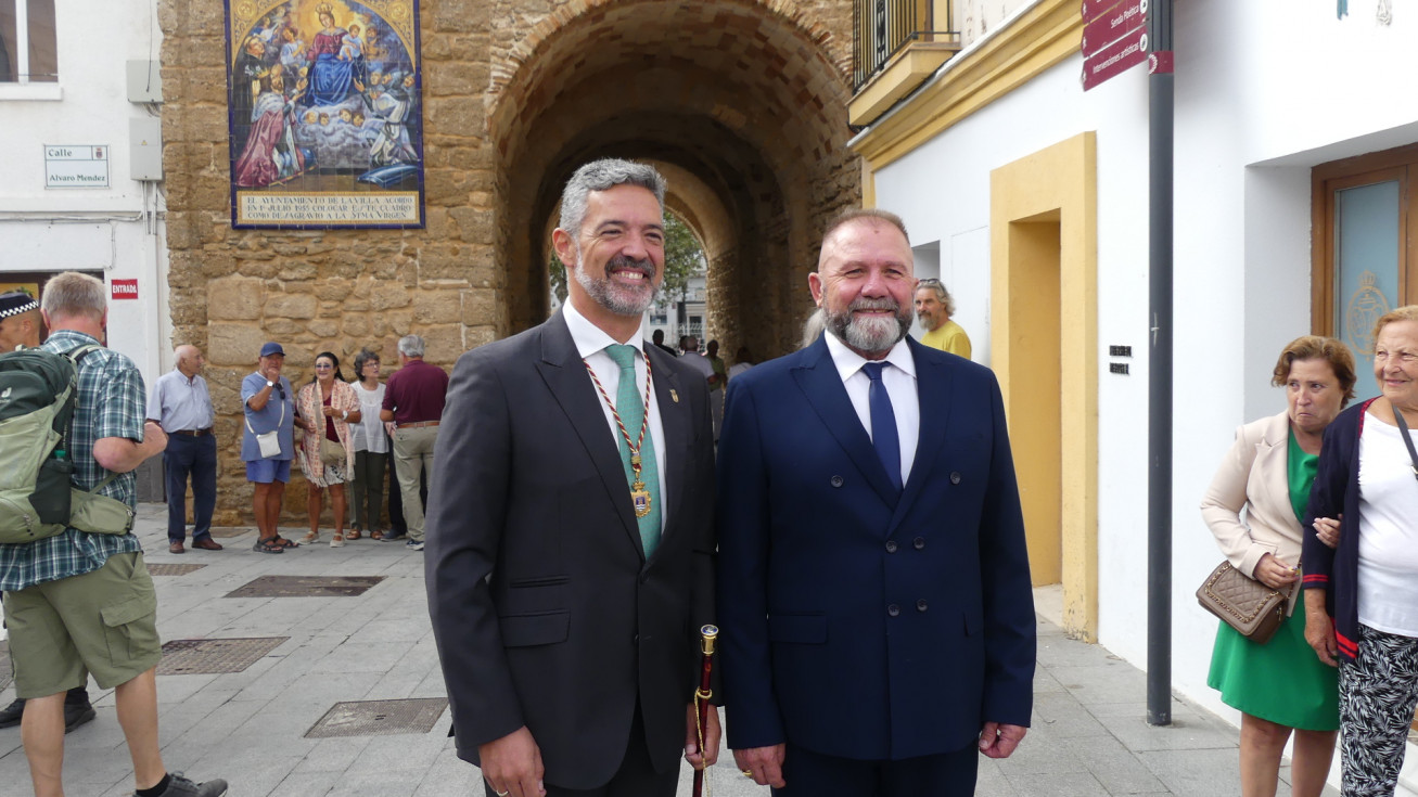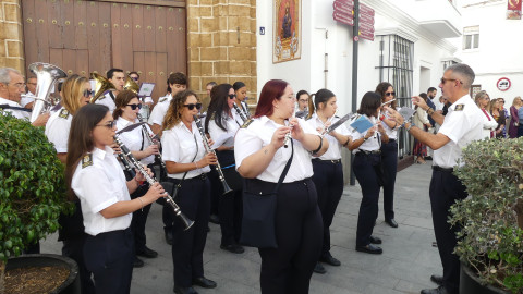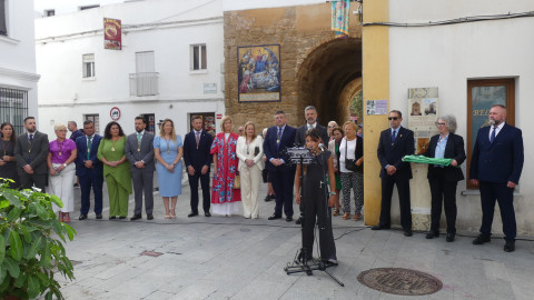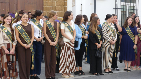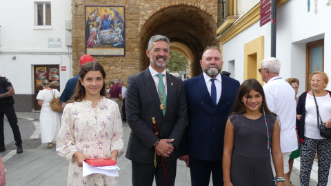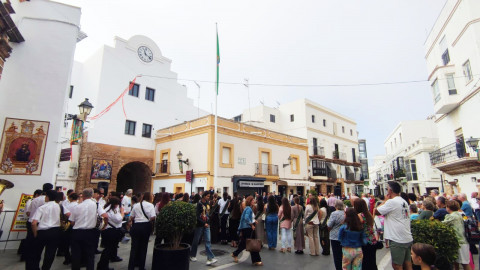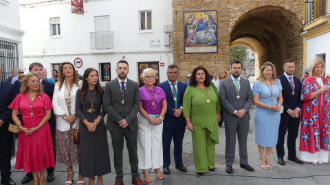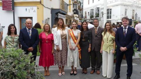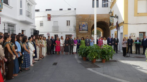 El alcalde de Rota, Javier Ruiz Arana, miembros de la Corporación municipal, las damas del Rosario, encabezada por la dama mayor, Paola Álvarez Caballero, y algunos ciudadanos, han participado en este acto simbólico del Día de Rota.
