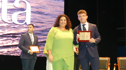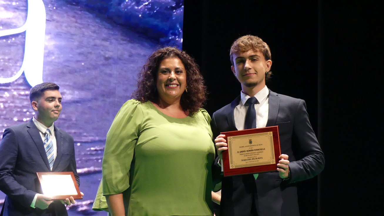 Antes de comenzar la X Gala del Día de Rota con la entrega de homenajes, desde el Ayuntamiento se volvieron a entregar las distinciones a los alumnos que durante el curso 2025/26 consiguieron los mejores expedientes académicos, destacando por su esfuerzo y resultados. Es un foco que desde la delegación de Educación se pone sobre valores claves como la constancia y el trabajo para conseguir metas. Los alumnos que hoy han subido al escenario, decía la delegada de Educación, Laura Almisas, son el reflejo de una juventud bien preparada a la que nadie le regala nada, ejemplo para otras generaciones.