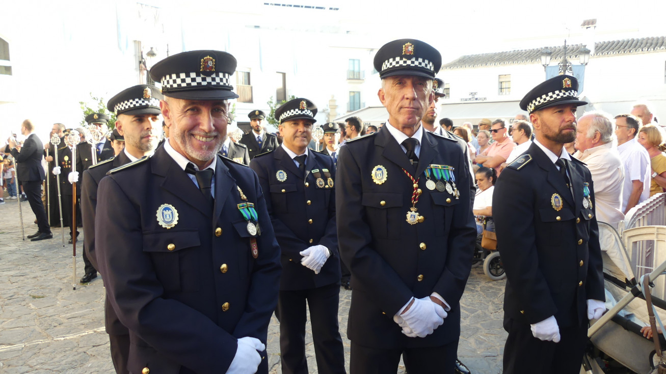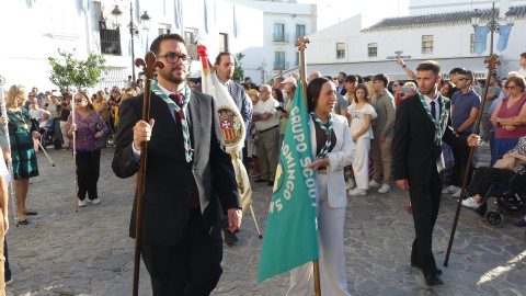 Junto a estas jóvenes también se ha podido ver a representantes de asociaciones parroquiales y de María Auxiliadora, a miembros de todas las hermandades de penitencia y gloria de la villa por orden de antigüedad, hermanos de la Hermandad del Rosario y miembros del Consejo Local de Hermandades y Cofradías, con su presidente José Manuel Sánchez Peña a la cabeza. Completaban el largo cortejo una amplia representación de agentes de la Policía Local de Rota, de la Asociación Santo Ángel de la Policía Nacional (ASACRO), de la Guardia Civil y de Protección Civil.