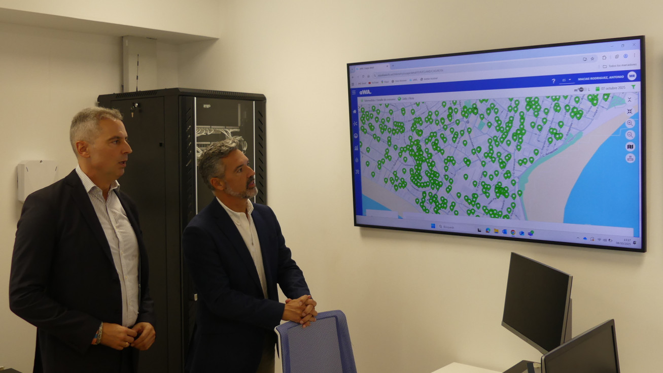 Una vez dentro de la oficina de Aqualia, una de las salas más interesantes es la de control, donde están localizados en tiempo real todos los contadores de agua que hay en Rota; son 20.000 clientes que abarcan a la población total de 30.000 habitantes que tiene la localidad. Esas pantallas gracias a los parámetros de control que reflejan, permiten detectar fugas en tiempo real, incidencias por consumo excesivo o ausencia del mismo así como averías, lo que agiliza mucho el trabajo a la hora de poner soluciones y facilitan datos que se integran para analizarlos y prestar un mejor servicio al ciudadano.