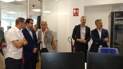 Antes del breve recorrido por las salas de reuniones, espacio de atención al público, sala de control y zona de archivo, el director de Aqualia Rota y el jefe de servicio de Aqualia en Rota, Jorge Mínguez, han explicado dos de las novedades incluidas en esta oficina, la principal el cajero situado en la fachada que permite el pago de recibos a cualquier hora del día. El cliente solo tendrá que introducir su DNI o escanear el código QR de la factura (ya sea en papel o electrónica a través del móvil) y tener acceso a las facturas que podrá pagar de forma cómoda si no tienen domiciliado el cargo. De momento, un 50% de los clientes de Aqualia en Rota han optado por la domiciliación. El cajero es fácil de manejar, con indicaciones que son muy intuitivas y que permitirán a cualquier persona manejarlo, aún así, han explicado que en horario de oficina, los trabajadores también ayudarán a esas personas que puedan tener alguna dificultad.