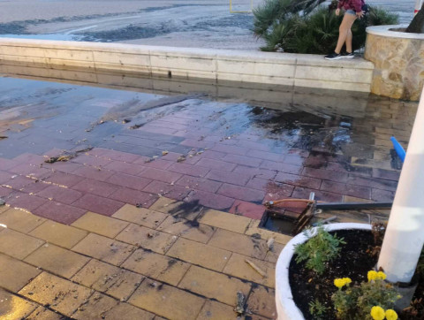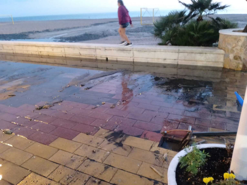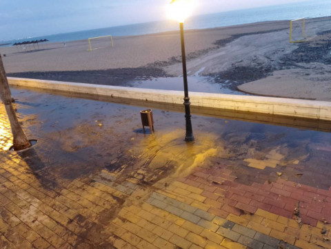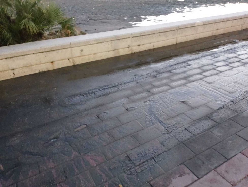 En este caso, el problema se ha vuelto a centrar en el paseo marítimo de la Costilla, a la altura de la bajada central de la plaza Jesús Nazareno, que ha acabado en poco minutos cubierto de un manto negro de agua con residuos y un olor desagradable.