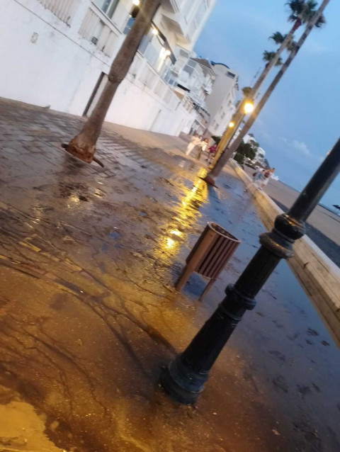 Esta tarde de viernes han aparecido las primeras lluvias y con ello, se ha vuelto a repetir una imagen que no por ser habitual deja de impactar a quien se topa con ella, y es que aunque apenas ha llovido, el chaparrón pasajero que ha hecho acto de presencia pasadas las seis de la tarde, ha dejado en la zona del paseo marítimo de la Costilla una imagen bastante cuestionable en un municipio turístico.