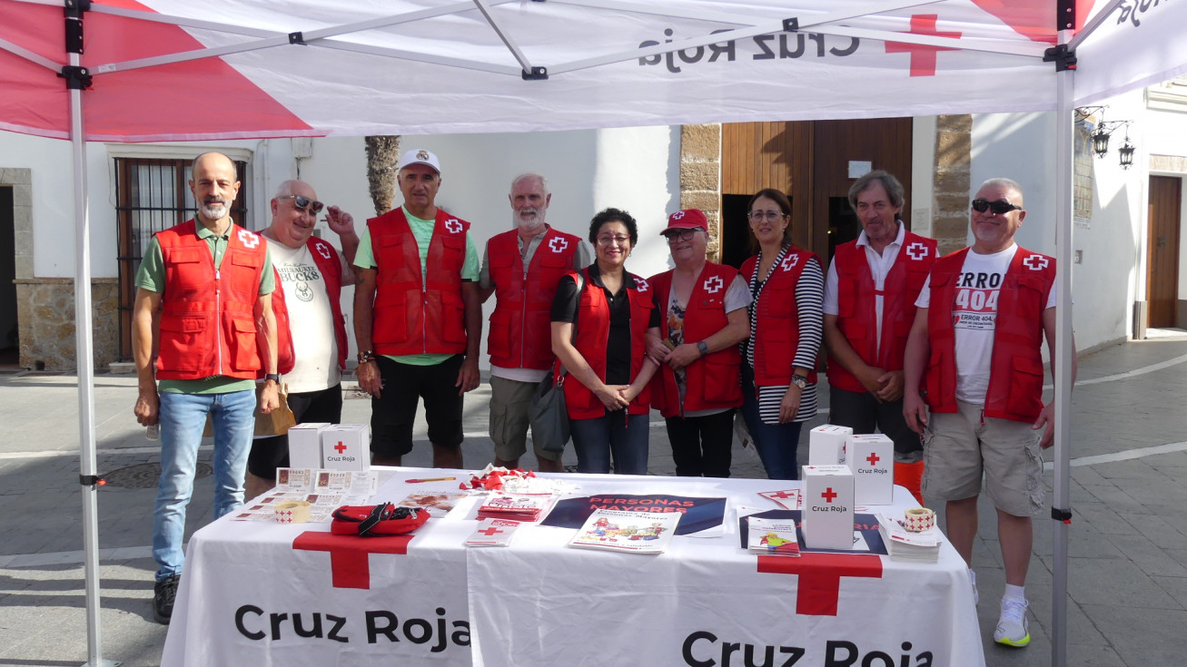 Voluntarios de Cruz Roja Rota han estado en la mañana de este martes, 14 de octubre, en la plaza de San Roque para celebrar en la calle el Día de la Banderita; una jornada que les sirve para seguir dando a conocer los programas y líneas de ayuda en las que trabajan y que benefician a muchos ciudadanos, ya sean mayores, migrantes, mujeres, niños, desempleados, etc.