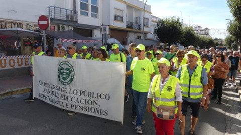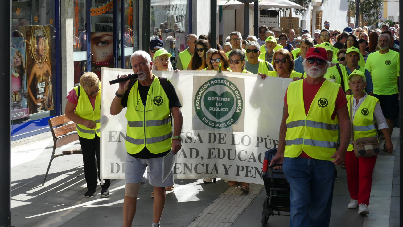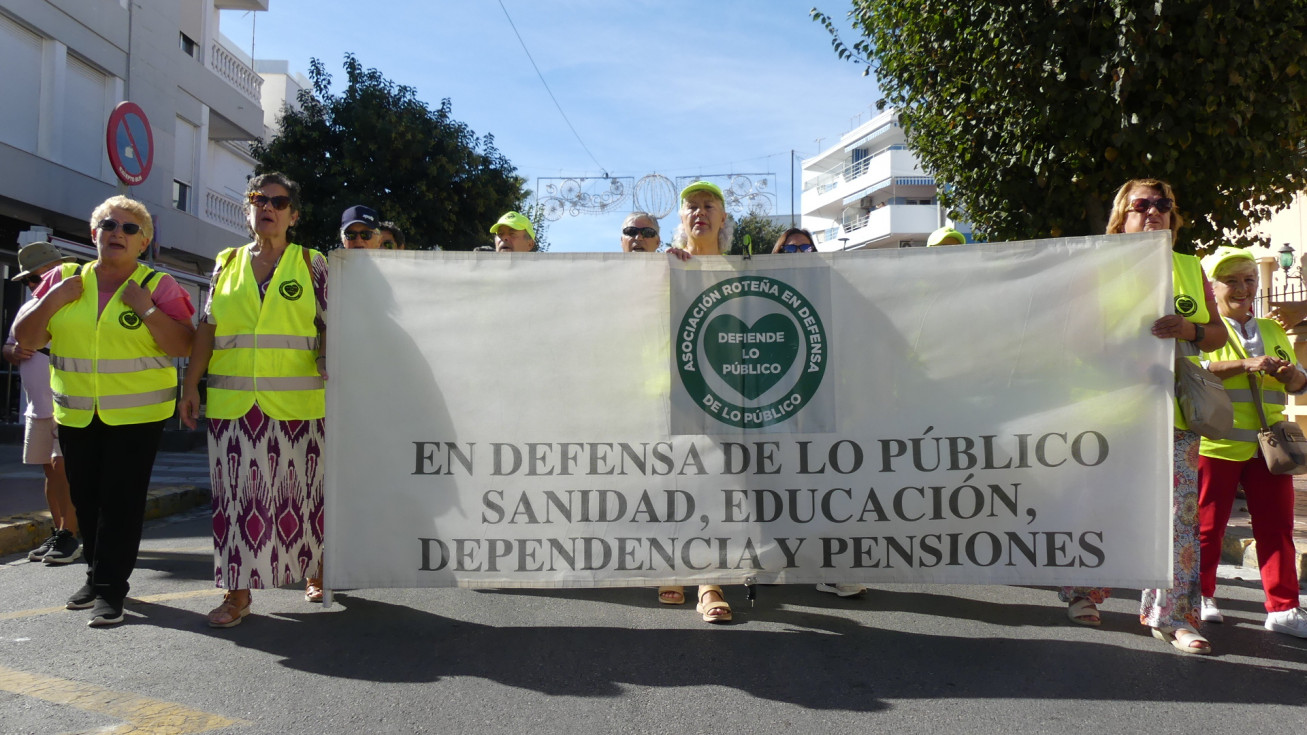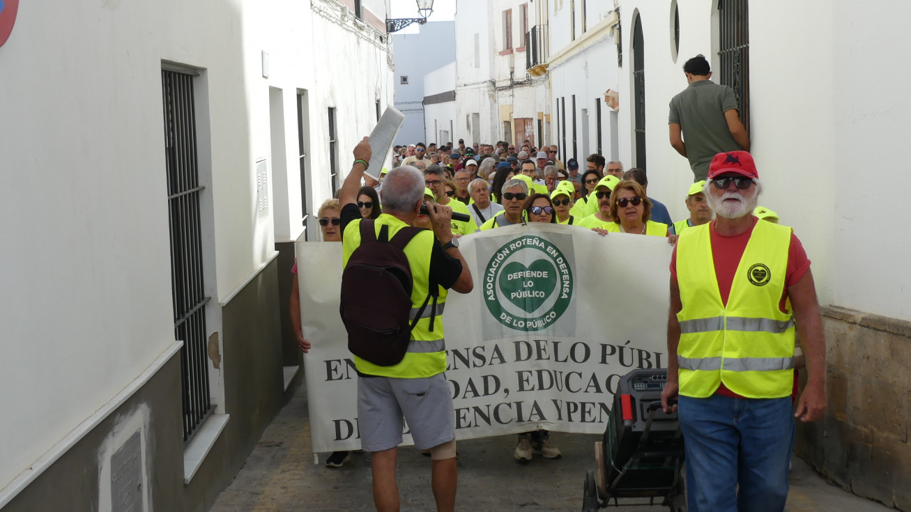A continuación, Rosa Bustamante, miembro de la asociación, leía el manifiesto en el que venía a resumir que la Ley de Dependencia, la vivienda y la sanidad pública en Andalucía "están en crisis", denunciando un "claro desvío de fondos hacia la sanidad privada". En esa línea, señalaba que "la atención sanitaria se colapsa" y los ciudadanos enfrentan dificultades para acceder a servicios médicos, lo que genera inseguridad, especialmente entre los mayores. Igualmente, se ha denunciado la falta de personal y recursos en los centros de salud, así como la normalización de protestas por parte de trabajadores sanitarios que reclaman mejores medios para desempeñar su trabajo.