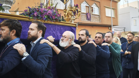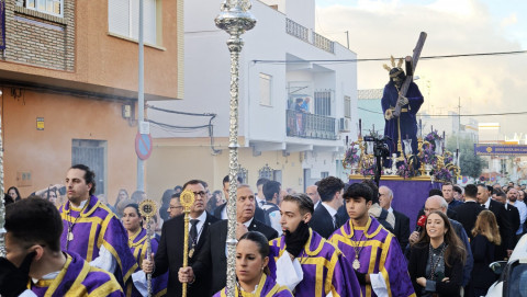Cientos de roteños acompañan a Jesús Nazareno en su traslado por la vía verde hacia el cementerio