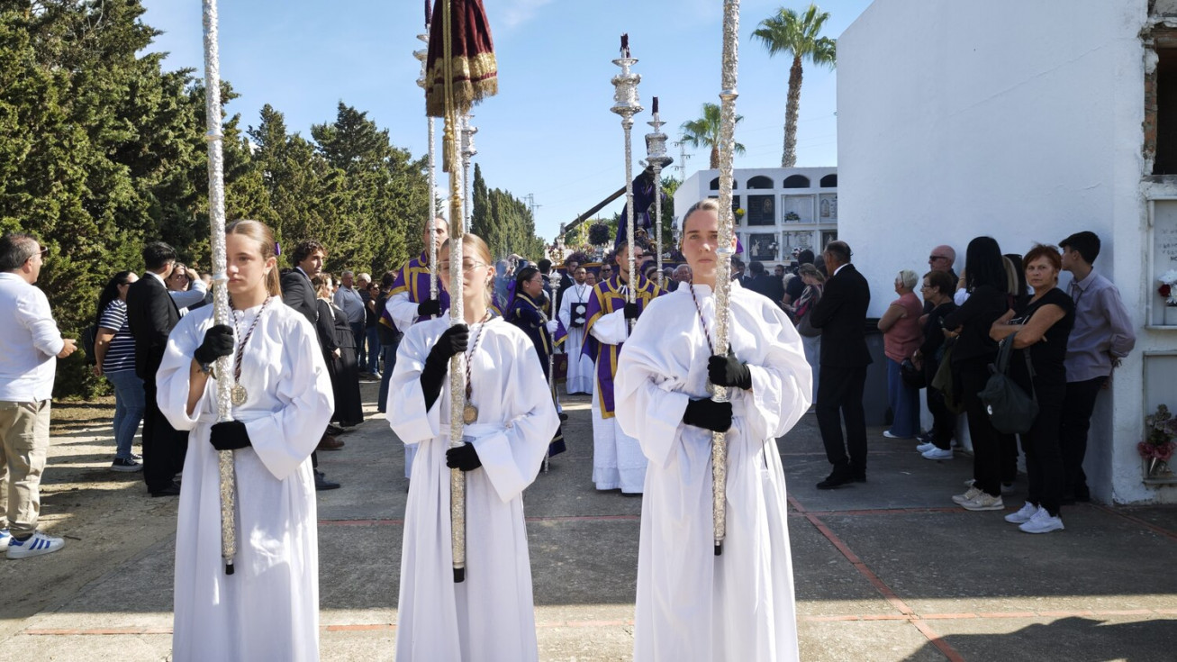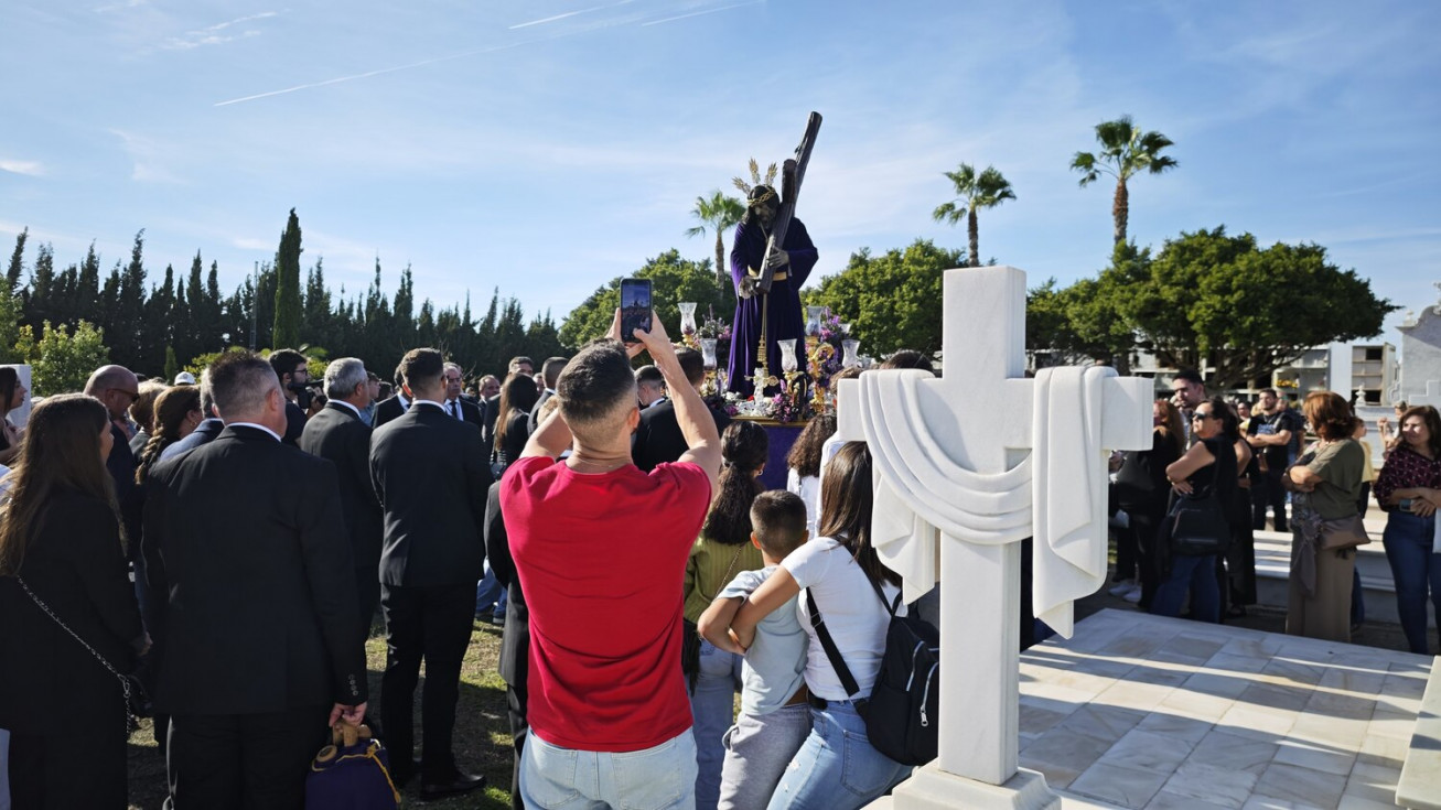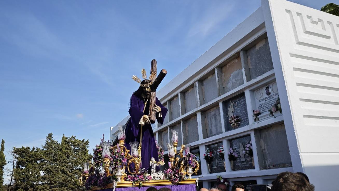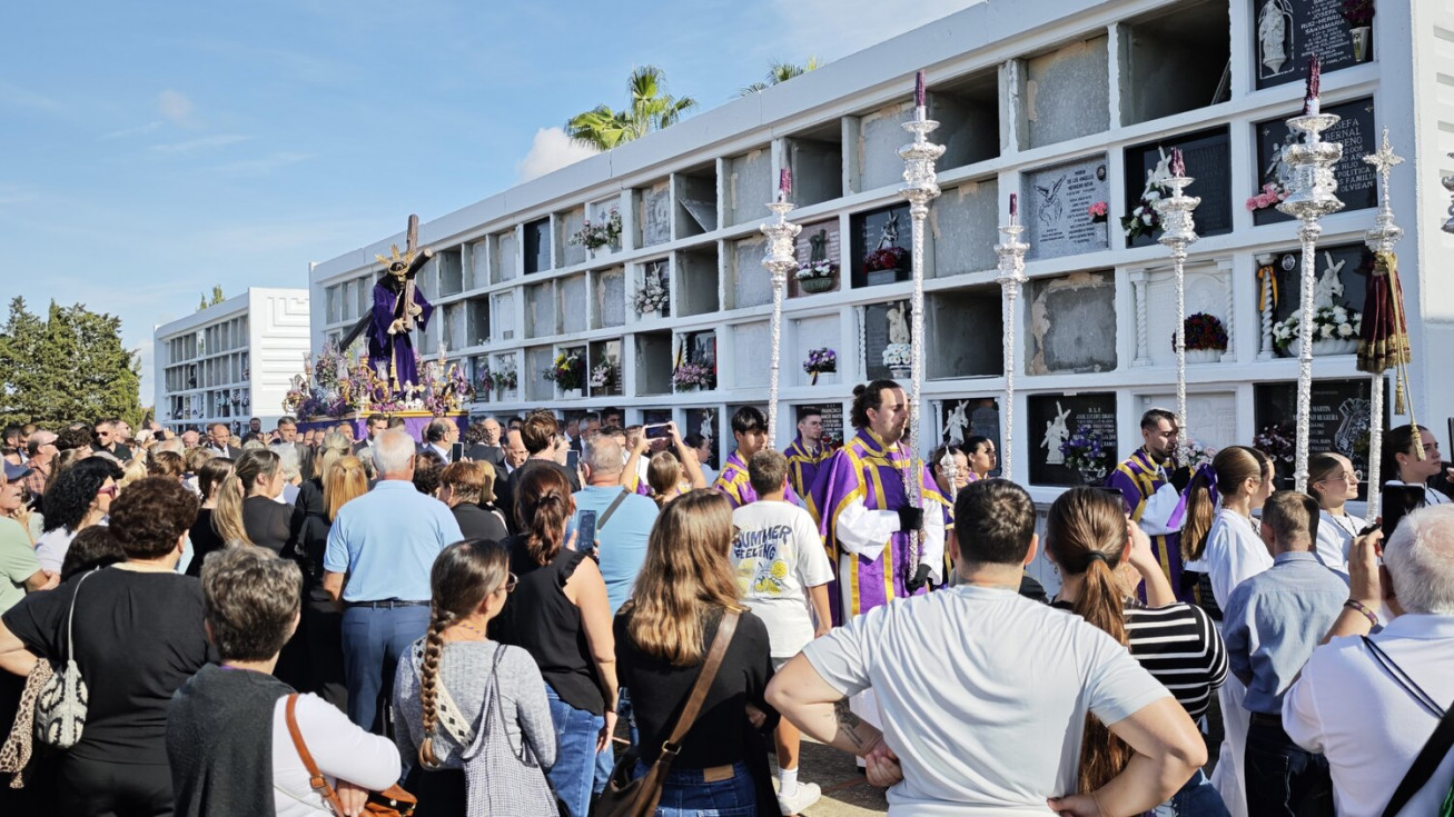 El cementerio municipal de Rota, que en el día de los Fieles Difuntos es lugar de paso de muchos ciudadanos que tienen allí a sus seres queridos, ha sido el escenario de un momento histórico, de consuelo y devoción. Pocos roteños pensaron alguna vez que Nuestro Padre Jesús Nazareno estaría en esta vida terrenal tan cerca de quienes ya no están, pero el encuentro ha sido posible gracias a la misión evangelizadora que el Señor de Rota emprendió el pasado martes y este domingo, lo ha llevado al camposanto, repleto de ciudadanos.