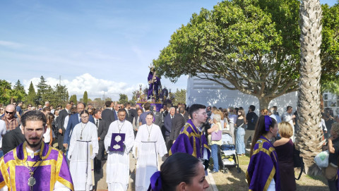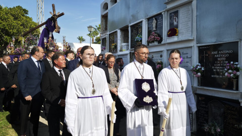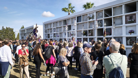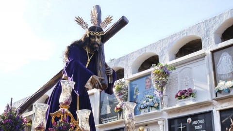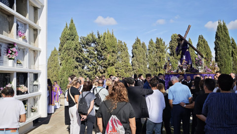 El recorrido por las calles del cementerio se ha prolongado en casi una hora y ha comenzado tras la celebración de la misa de los Fieles Difuntos, que hoy se celebraba en el cementerio al aire libre y no en la capilla como es habitual, para aprovechar la presencia de Nuestro Padre Jesús Nazareno y dar cabida a la cantidad de ciudadanos que se han congregado en esta cita del 2 de noviembre.