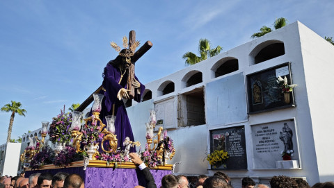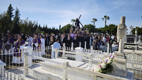 Durante todas las paradas realizadas, los ciudadanos que han permanecido en el cementerio han vivido momentos especiales, cada uno de una forma distinta, agradecidos por la oportunidad de ver al Señor de Rota en un espacio que siempre apena visitar porque recuerda la ausencia pero que hoy tenía un punto de alegría. La hermandad no ha dejado ningún rincón por recorrer, pasando por delante del 'Bosque de cenizas', con pequeños altares donde están las personas incineradas, y la zona de tumbas y panteones. La intención era repartir consuelo en esta misión evangelizadora y se ha cumplido.