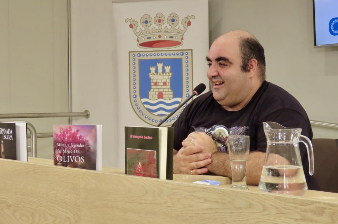 El delegado de Cultura, Pablo Gómez, que fue el encargado de presentarlo, le agradeció su presencia en la localidad y el gesto que tuvo de donar tres ejemplares de su trilogía "Granada oscura", "Mitos y leyendas del mar de olivos" y "El triángulo del sur", para que queden en el archivo de la biblioteca municipal y dar con ello la posibilidad a más lectores de poder conocer su obra.