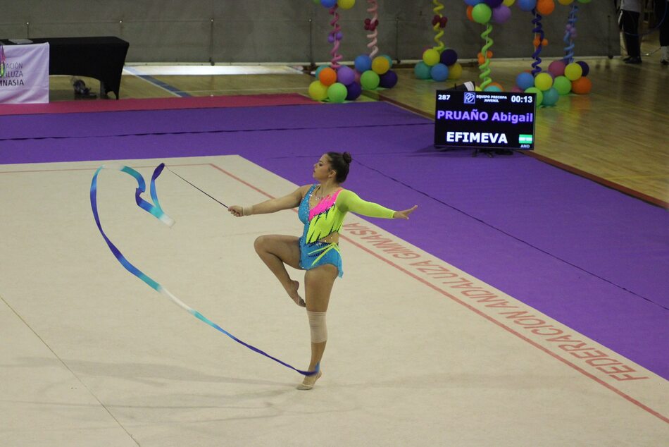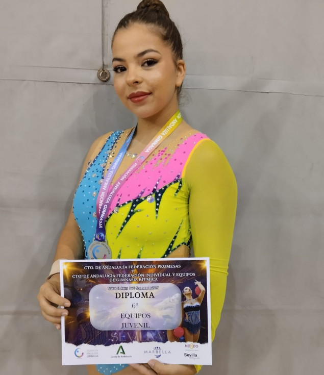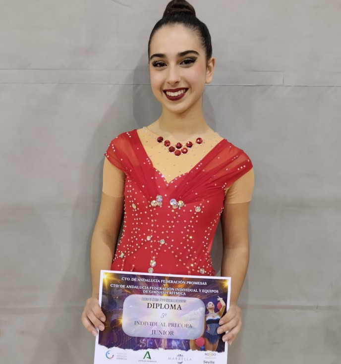Subieron también al podio en juvenil Precopa Equipo Abigail Pruaño, que fue subcampeona de Andalucía con cinta; modalidad en la que en equipo junto a Paola Gutiérrez del Club Lebrija, quedó sexta clasificada.