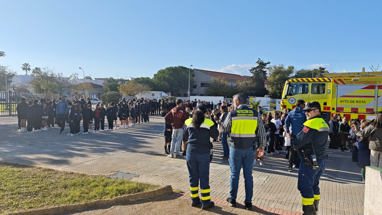 En Rota, los colegios e institutos (a excepción del IES Castillo de Luna), han iniciado la evacuación, vertical en unos casos y horizontal en otros, de todo el alumnado para comprobar los tiempos de respuesta ante la posibilidad de un tsunami. En total, más de 4.000 alumnos junto al profesorado, que al escuchar la señal del centro, activada tras recibir la alerta en los móviles, han salido de clases de forma ordenada acudiendo cada uno al punto indicado con anterioridad en las reuniones previas.