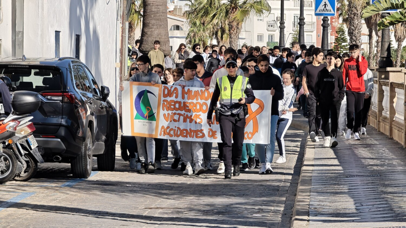 Un total de 122 alumnos han marchado desde el instituto con una pancarta conmemorativa para mostrar su compromiso con este día que hoy ha tenido muy presente a los roteños que fallecieron en la carretera. Algunas de esas muertes fueron evitables porque tuvieron lugar por imprudencias propias o de terceros, pero la triste realidad, les llevó a perder la vida y dejar con ello familias truncadas, viudas, hijos huérfanos y padres que no sobreviven el trágico hecho.