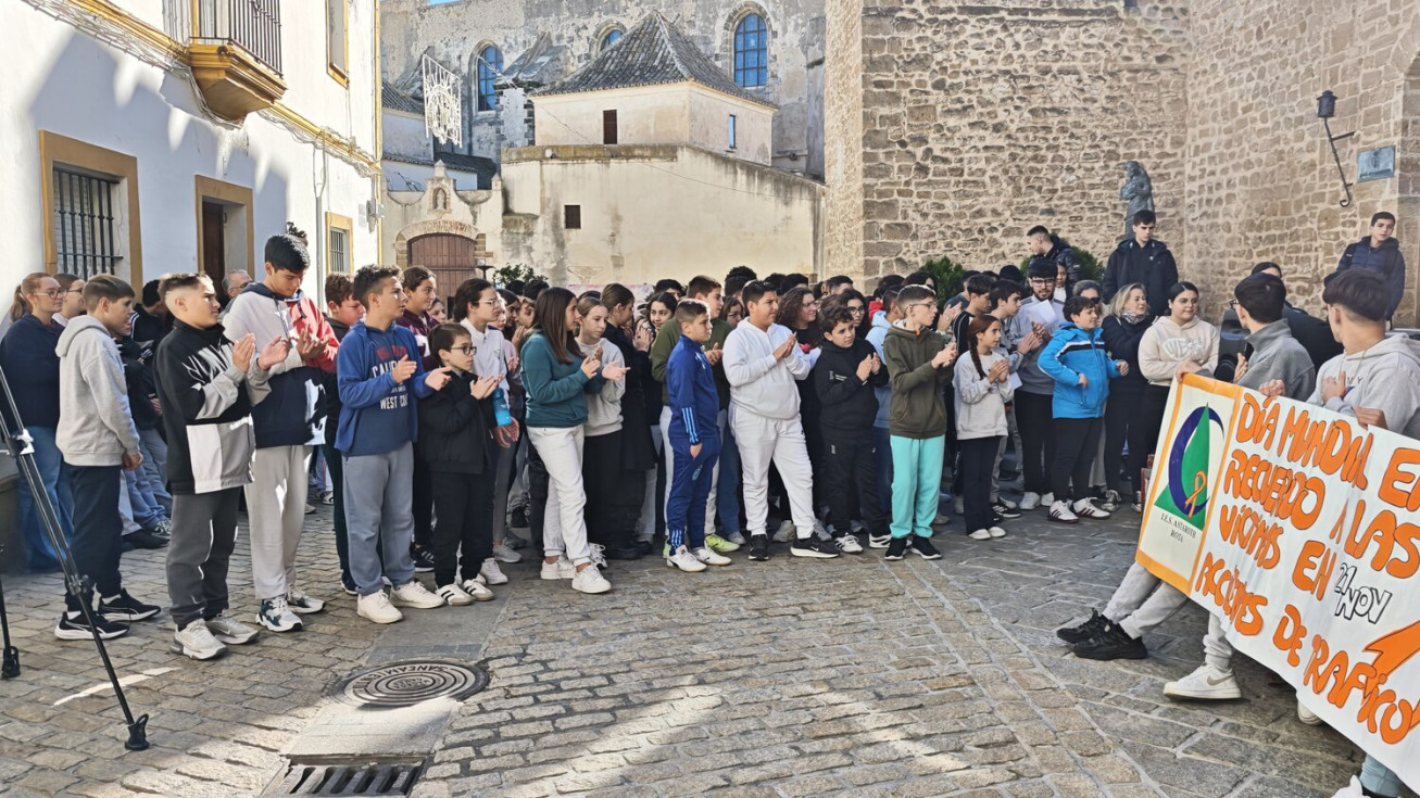 Los alumnos del IES Astaroth recuerdan a las víctimas de accidentes de tráfico con especial presencia de los roteños que perdieron la vida en ellos