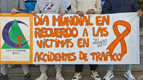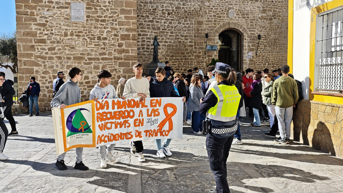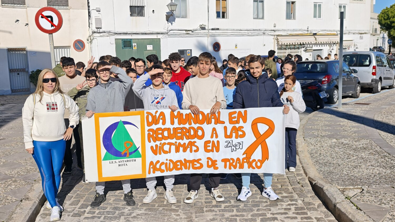 Los alumnos del IES Astaroth de Rota han salido hoy a la calle para conmemorar el Día Mundial de Recuerdo a las Víctimas de Accidentes de Tráfico. Una jornada que invita a la reflexión y a la concienciación sobre la necesidad de dar la importancia que tiene ponerse al volante y cumplir las normas de seguridad vial.