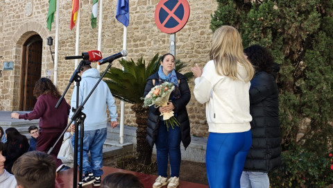 El ramo de flores que normalmente los alumnos depositan a los pies de un monumento para recordar a las víctimas de accidentes de tráfico se le ha entregado hoy a ella, a un ejemplo de entereza ante el sufrimiento que deja un accidente de tráfico para siempre.