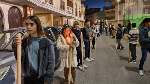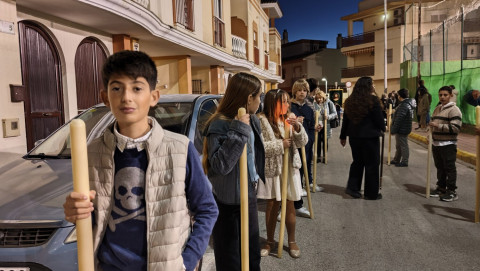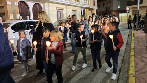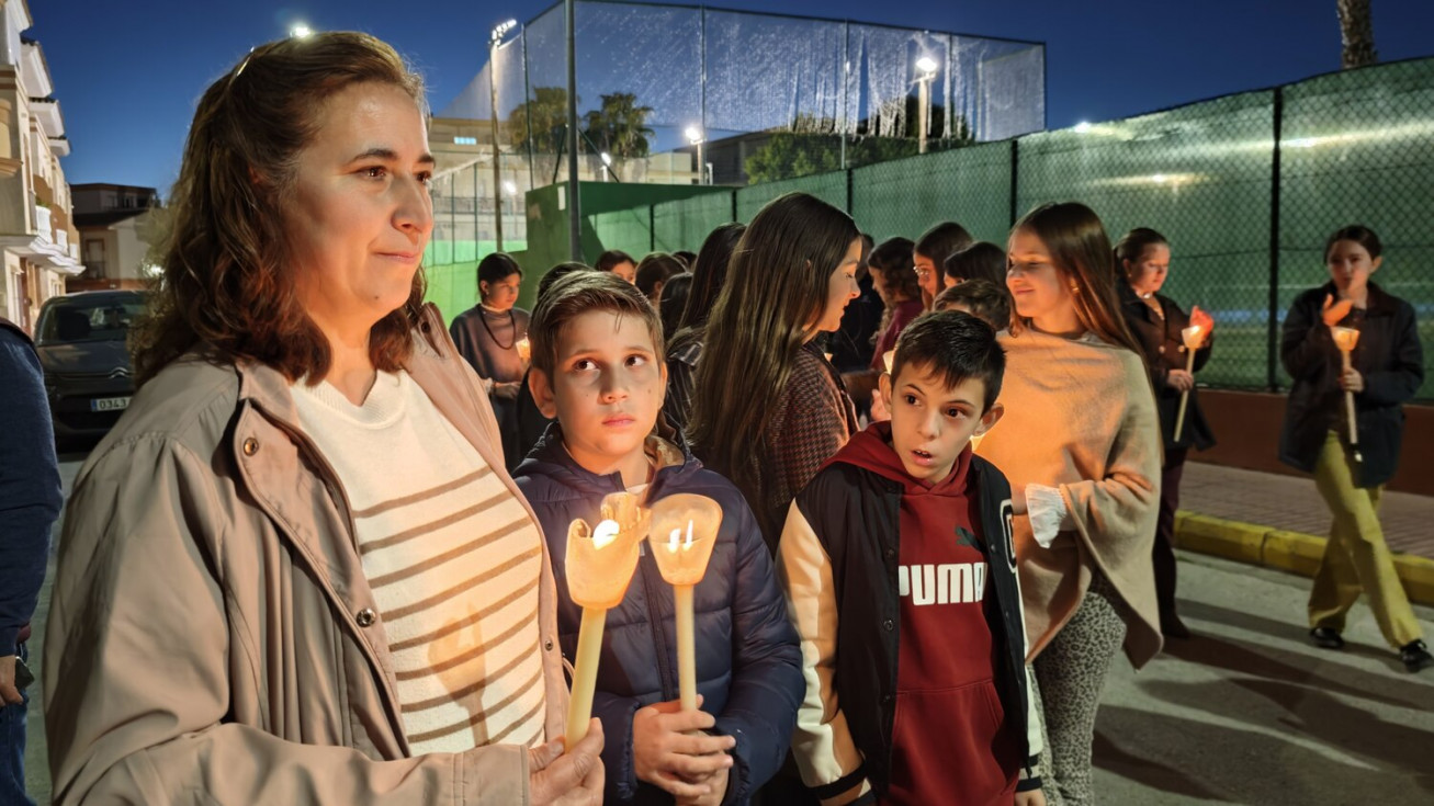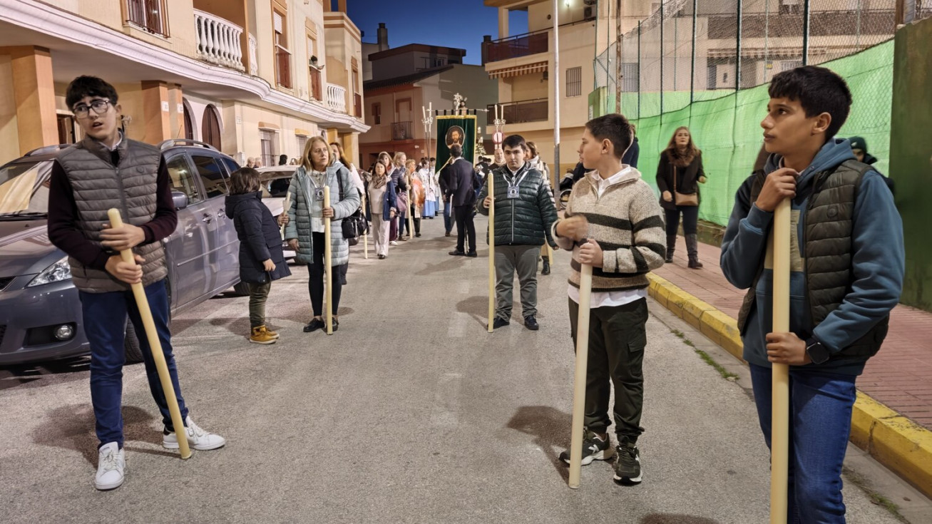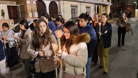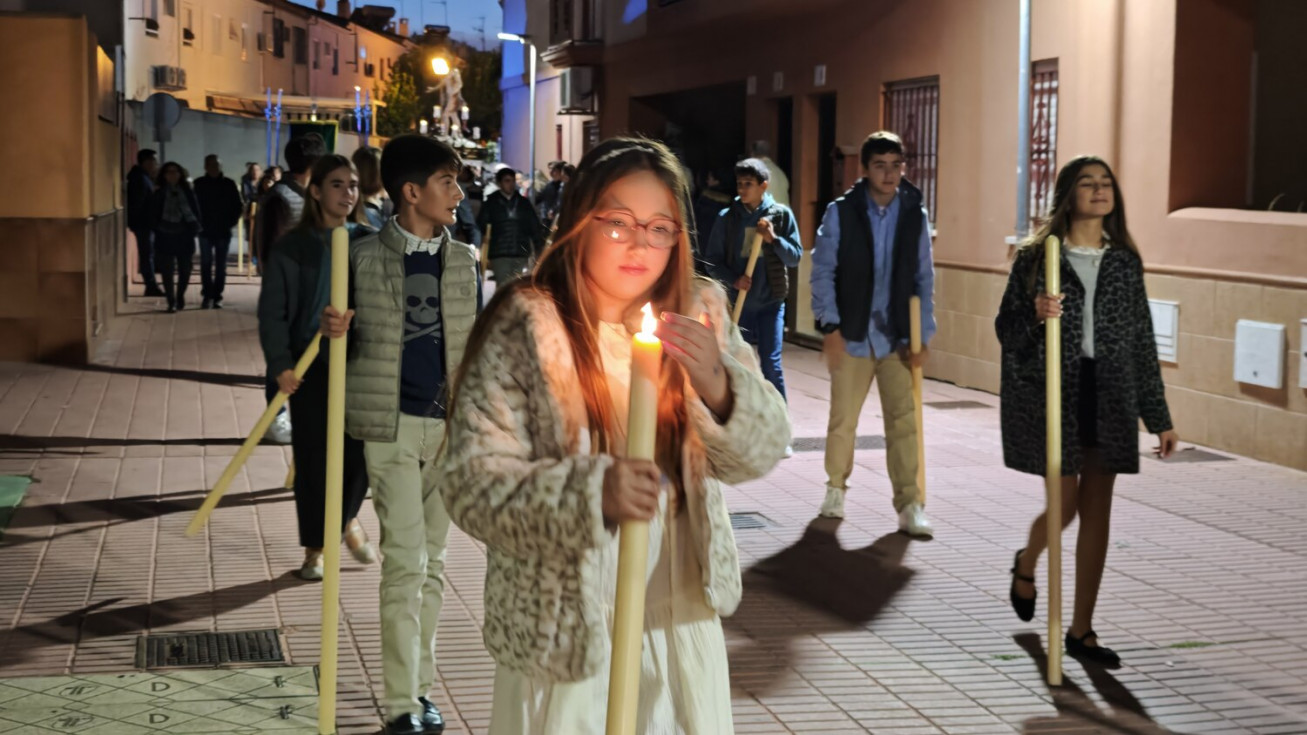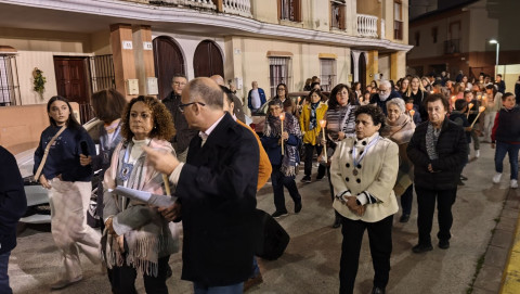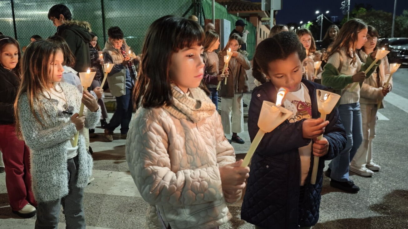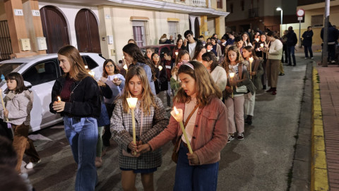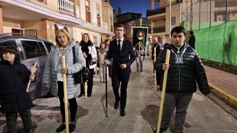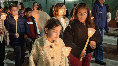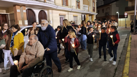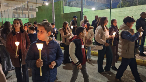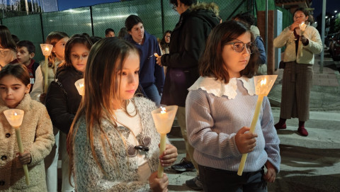 A las seis y media de la tarde y tras el último día de celebración del triduo que ha tenido lugar con motivo de la solemnidad de Cristo Rey, se ha iniciado este vía lucis por las calles cercanas al entorno del colegio, por donde se quiere seguir evangelizando con el fin de que la imagen de Jesús Resucitado vaya creando arraigo en la barriada.