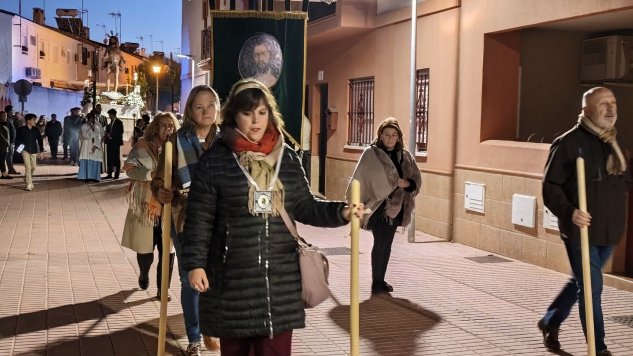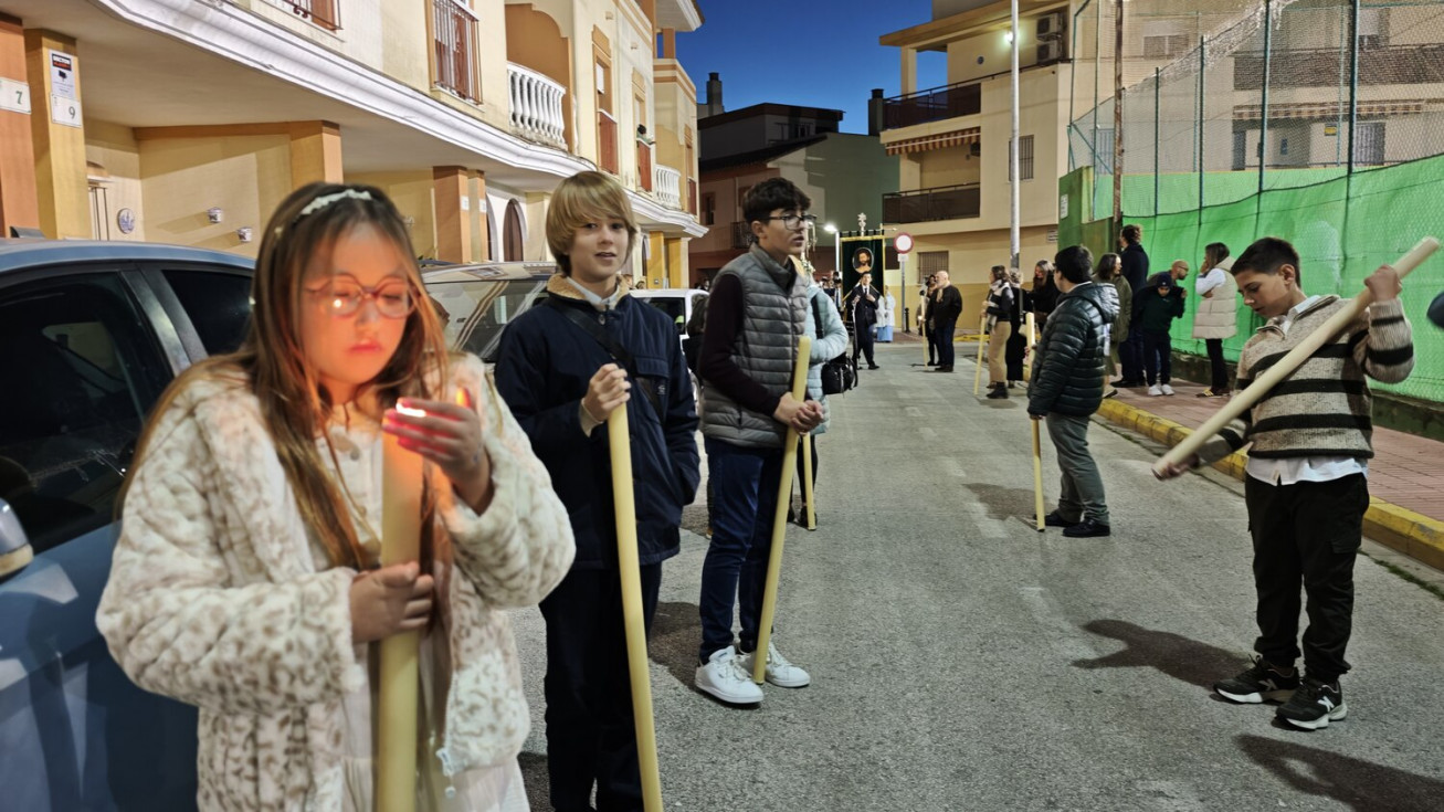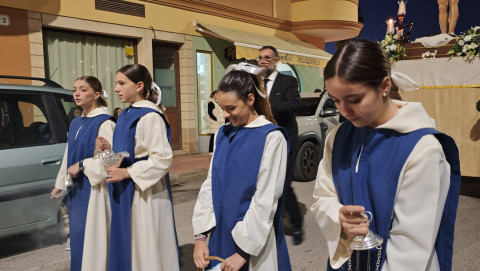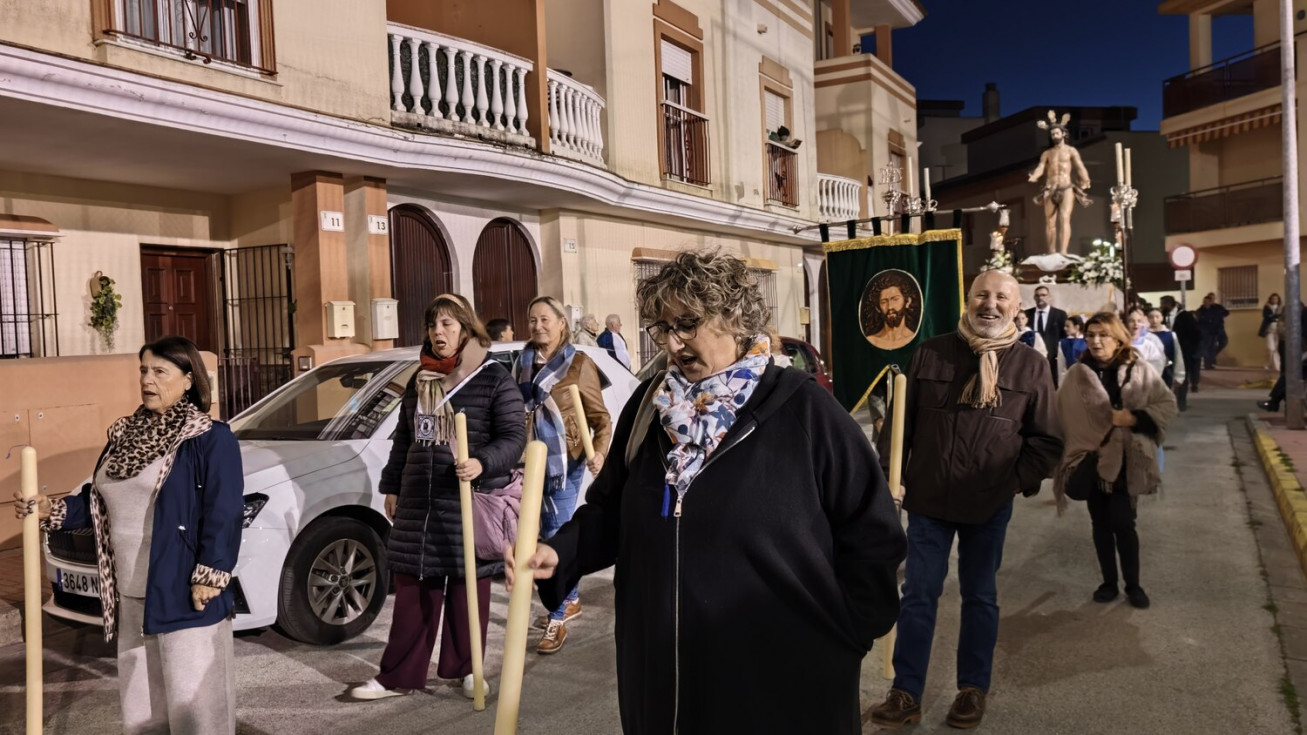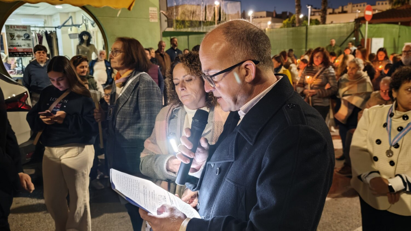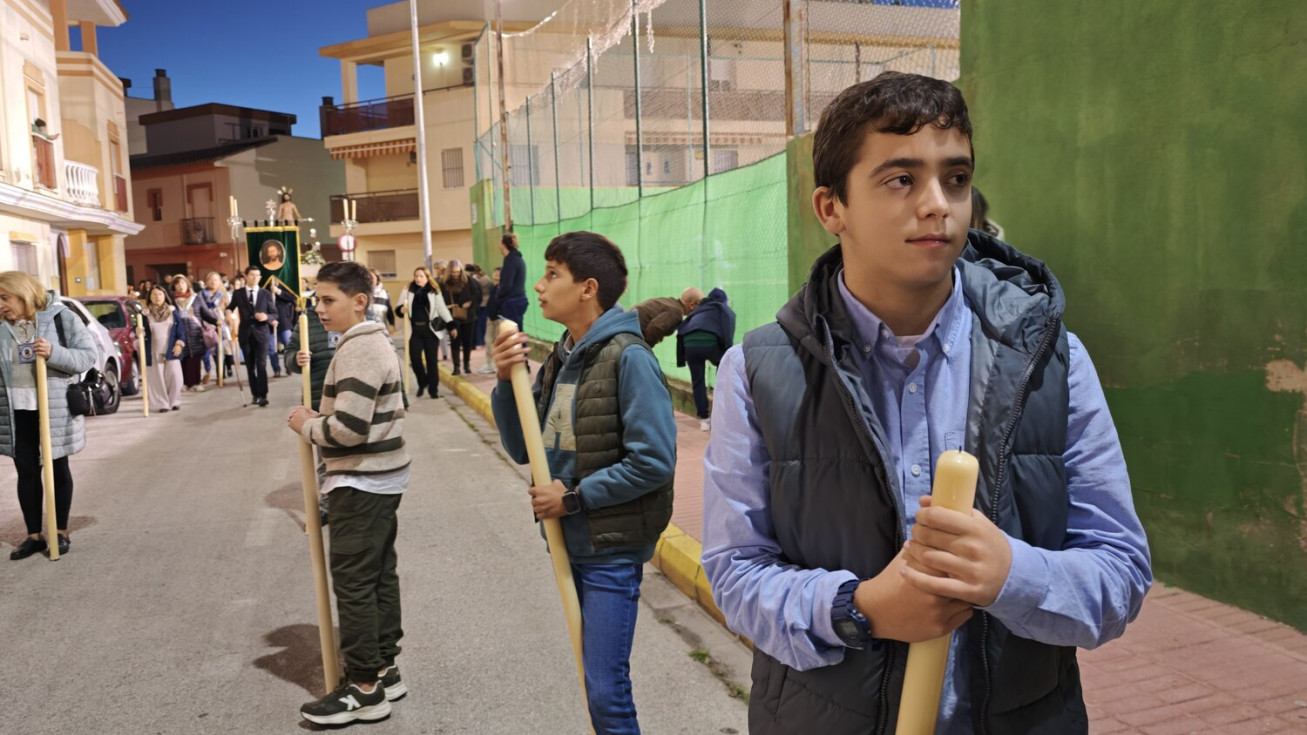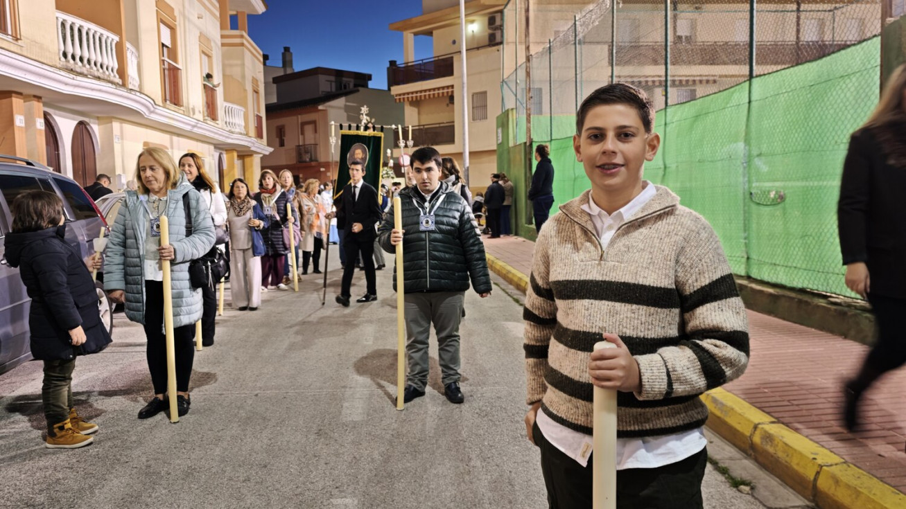 A las seis y media de la tarde y tras el último día de celebración del triduo que ha tenido lugar con motivo de la solemnidad de Cristo Rey, se ha iniciado este vía lucis por las calles cercanas al entorno del colegio, por donde se quiere seguir evangelizando con el fin de que la imagen de Jesús Resucitado vaya creando arraigo en la barriada.
