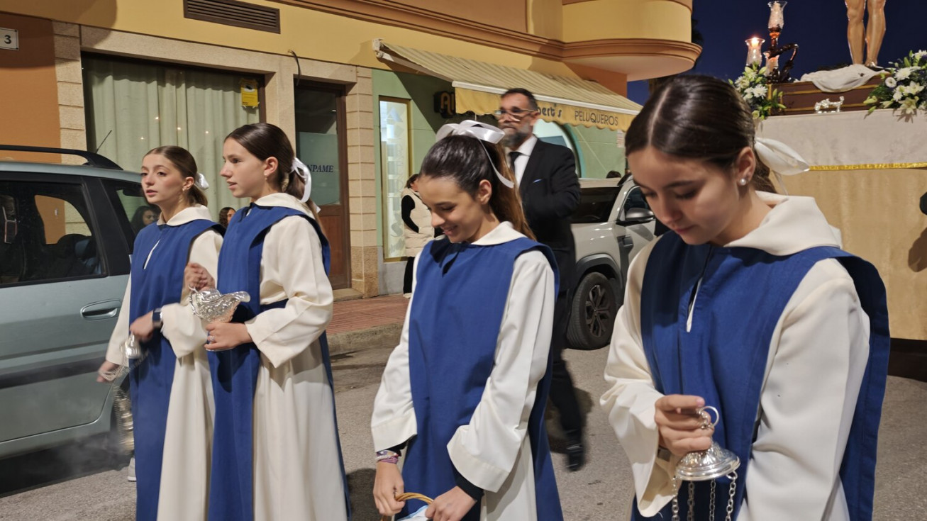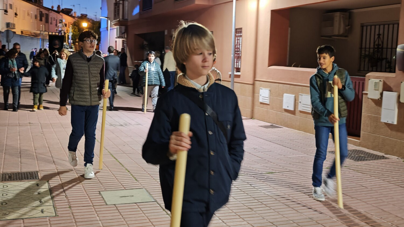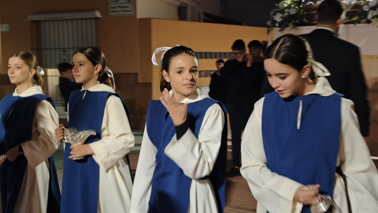 Vecinos de la zona han podido ver a Jesús Resucitado por sus calles acompañado de una amplia representación de alumnos de las Salesianas que son los que acogen en su centro educativo a esta imagen a la que en este mes de noviembre se ha podido ver por las calles.