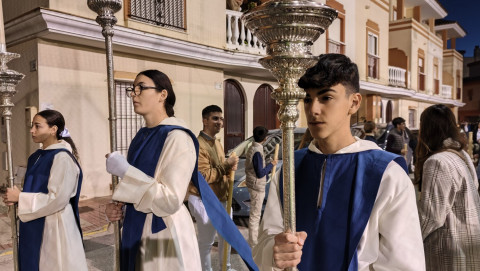 La festividad de Cristo Rey es una celebración litúrgica de la iglesia católica, en grado de solemnidad, que tiene lugar el último domingo del año litúrgico del rito romano, que suele variar cada año, y que en este 2025, coincide con el 23 de noviembre. Desde el colegio de las Salesianas, que se encarga de custodiar la imagen del Resucitado, sus cultos y salidas procesionales desde que fuera cedida por el Consejo Local de Hermandades y Cofradías de la villa de Rota, ha querido realizar este vía lucis tras dar por terminado el triduo que se han celebrado desde el día 19 en su honor.