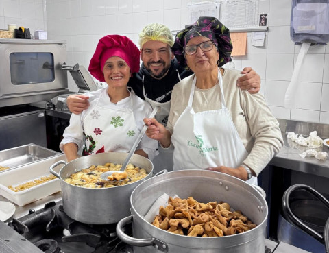 Desde la delegación del Mayor se está preparando todo y precisamente esta mañana de domingo, personal de la "Cocina solidaria" y de la delegación se han puesto manos a la obra para elaborar los 24 kilos de pestiños que se repartirán entre los asistentes.