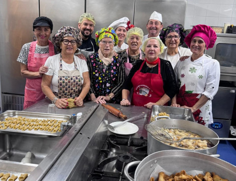 Hacer la masa, darle forma, freír los pestiños, añadirles la miel y dejarlos listos para degustar es un trabajo laborioso que necesita de mucha ayuda como hoy se ha visto en la cocina de este centro municipal de la plaza Vicente Beltrán, donde empezaban a escucharse los primeros villancicos, porque no hay mejor forma de hacer pestiños que metidos de lleno en el ambiente navideño.
