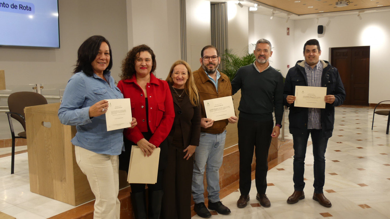 La entrega de diplomas a los participantes por parte del alcalde de Rota, Javier Ruiz Arana, la delegada de Transformación Económica, Encarna Niño, y la gestora del programa, María Dolores Fernández, y la satisfacción de empresas y entidades colaboradoras, así como de los participantes y del Ayuntamiento, han marcado la clausura de este programa subvencionado por el Servicio Andaluz de Empleo de la Consejería de Empleo, Empresa y Trabajo Autónomo de la Junta de Andalucía, y dirigido a colectivos específicos como personas con discapacidad, personas en riesgo de exclusión social y minorías étnicas, demandantes de primer empleo en la ocupación objeto de la práctica profesional, sin la necesidad de estar vinculado a ninguna formación.