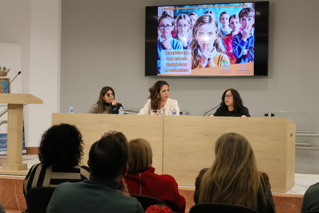 El alcalde de Rota, Javier Ruiz Arana, junto a la delegada de Igualdad, Laura Almisas, acompañaron a la asociación y a su presidenta, Carmen Lanagrán, en estas jornadas tituladas “Silencio en las aulas: visibilizar las violencias”.