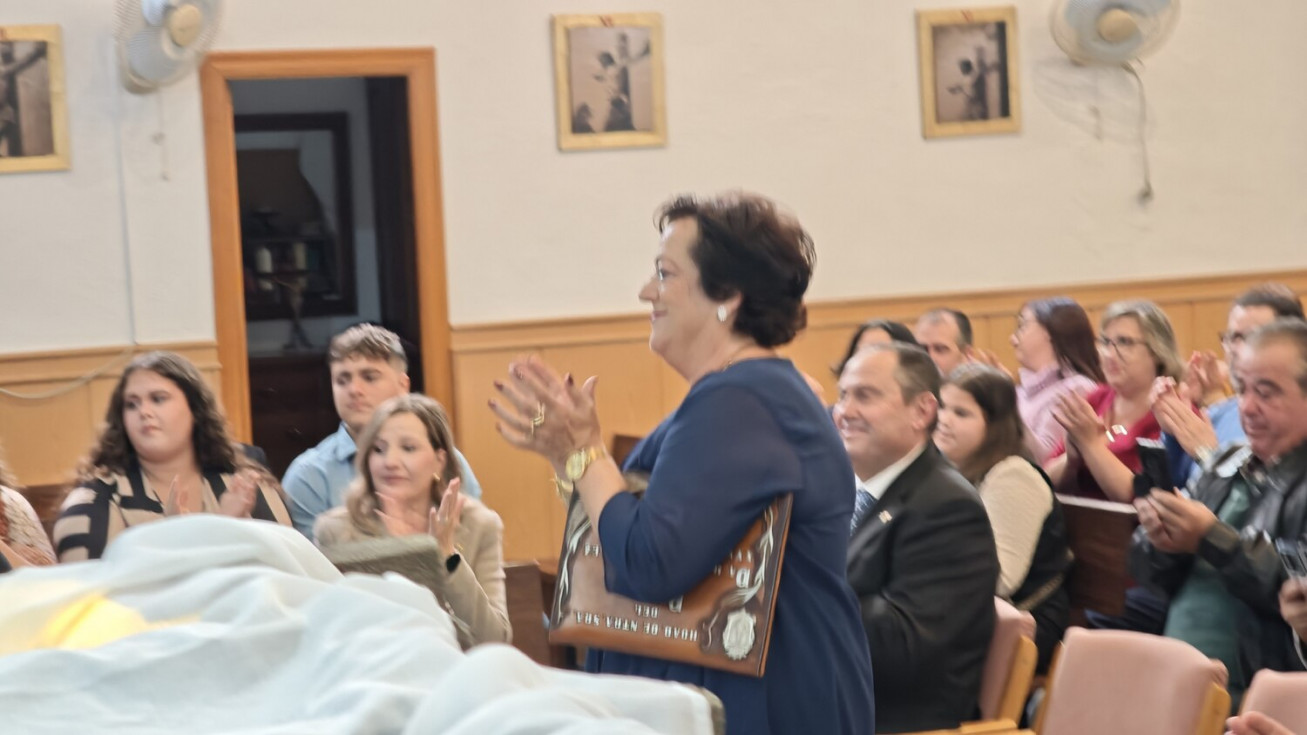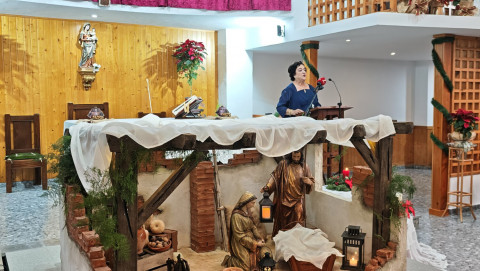 Con ayuda de dos amigos que la apoyaron con alguna canción venida a cuento, la exaltadora hizo un recorrido guiado por la historia cronológica del nacimiento de Jesús, con idas y venidas a imágenes de sus padres en vida o su esposo. La pena de la pérdida hoy la compensa la gente de la que se rodea y en especial, en Navidad. Una fiesta en la que no puede faltar el belén, recordando que fue San Francisco de Asís el primero que montó uno para desde él, evangelizar a la población, y la alegría e ilusión de los niños con la llegada de los Reyes Magos.