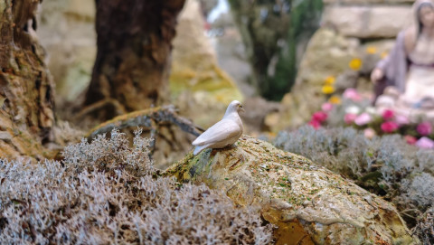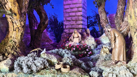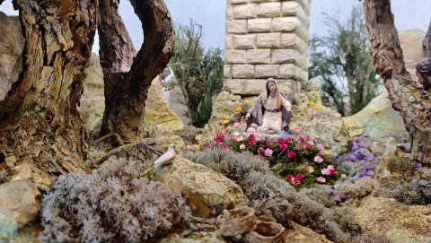El "Cantar de los cantares" fue la principal inspiración para el cántico espiritual de San Juan de la Cruz, volcado en este belén al igual que una parte del pregón de las Glorias de María de este año, que también está presente.