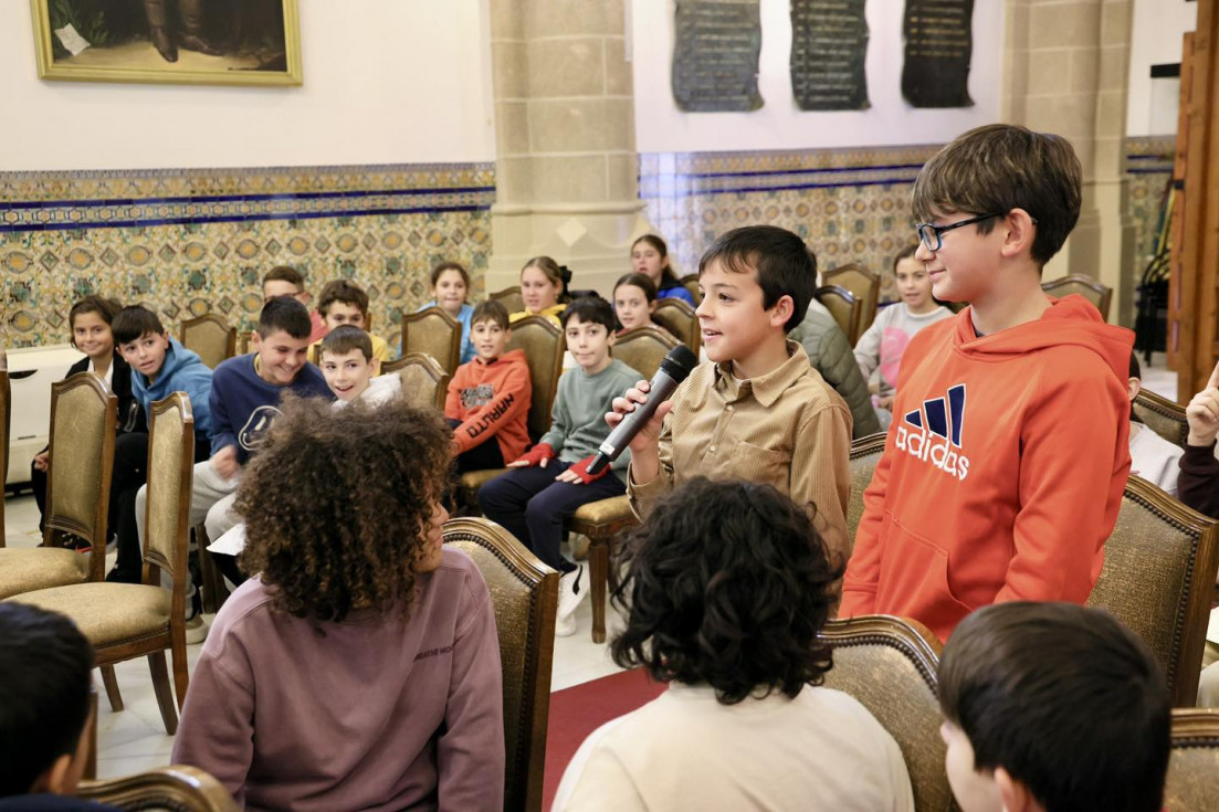 El Palacio Municipal Castillo de Luna acogió ayer martes una actividad escolar en la que los escolares de 6º curso de Primaria del colegio Maestro Eduardo Lobillo pudieron trasladar directamente al alcalde de Rota, Javier Ruiz Arana, sus propuestas.