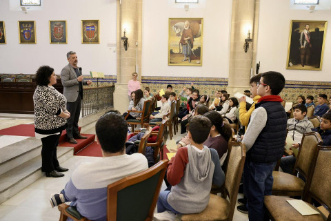 El primer edil, acompañado por la delegada de Educación, Laura Almisas, ha explicado de primera mano al alumnado el funcionamiento y organización del Ayuntamiento, a la hora de aprobar medidas y proyectos, gestionar los servicios municipales en todos sus ámbitos, organizar eventos, atender a la ciudadanía, etc.