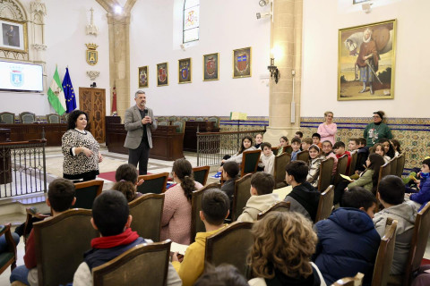 El regidor roteño ha agradecido la visita e implicación de los escolares agradeciendo esta participación activa y la posibilidad de que conozcan más de cerca el Ayuntamiento de Rota.