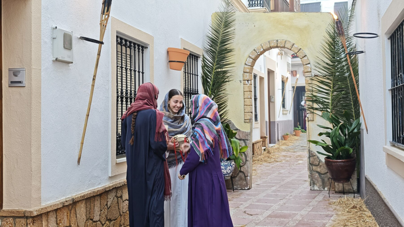 Las antorchas que han alumbrado las estrechas calles, los pórticos que simulan la piedra y han transformado algunas calles, la paja y arena por el suelo así como los animales que se han podido ver a lo largo de todo el recorrido, añaden un plus a las escenas que el público aplaude. Además, en el camino, todos los asistentes pueden endulzarse gracias a las poleás y galletas que los padres y madres elaboran de forma casera y reparten para hacer que esta visita sea aún más agradable.