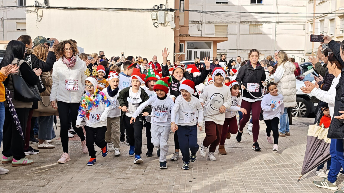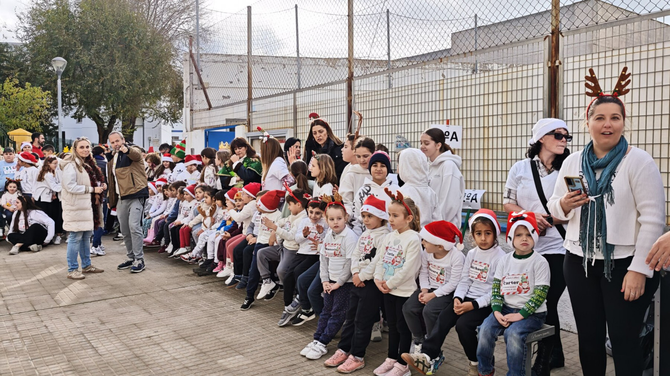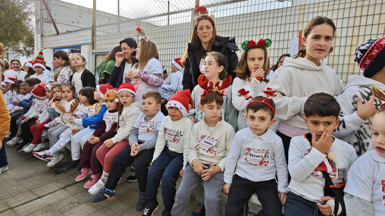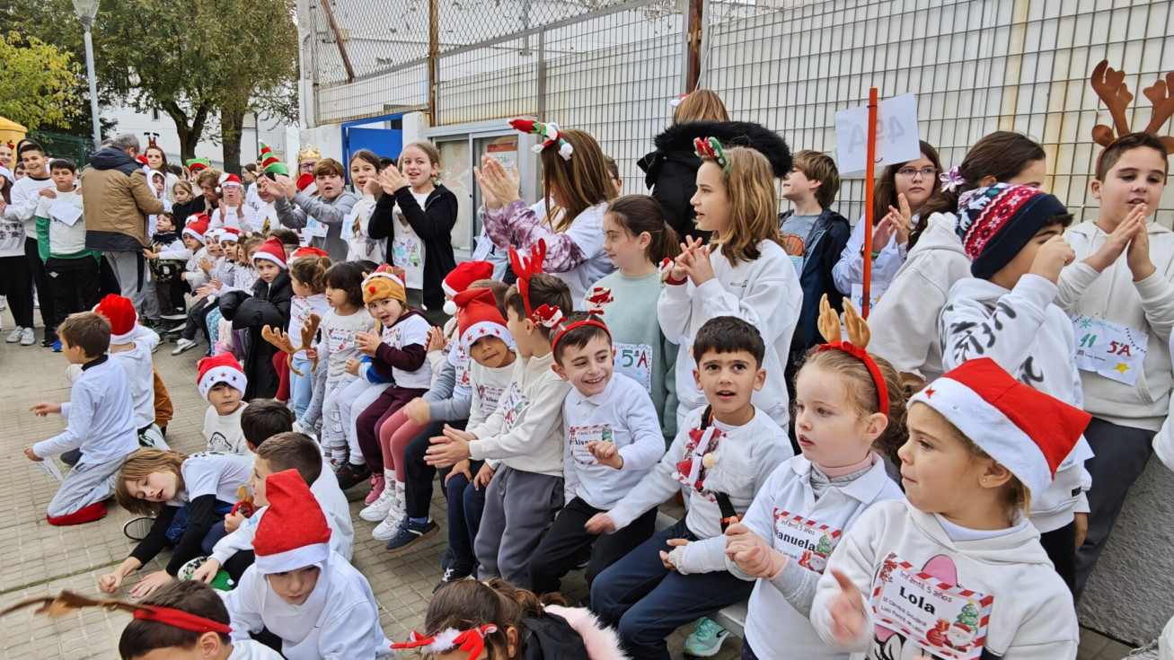 Los villancicos han marcado el ambiente festivo y deportivo que tenía como añadido el carácter navideño con los gorros, accesorios y jerseys temáticos que alumnos y profesores han lucido.
