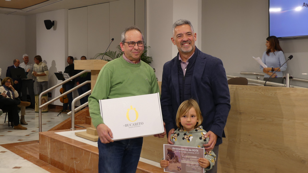 Tras el turno de intervenciones, ha sido el alcalde de Rota el que se ha encargado de entregar los premios en las distintas categorías de este concurso. Algunos de los premiados se han llevado una verdadera sorpresa, otros, ya son más que habituales, como el propio presidente de la asociación de belenistas, Miguel Moreno Ruda, que se ha hecho con el premio más importante, el primer premio de los belenes artísticos, dotado de 400 euros, un regalo y diploma.