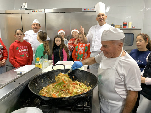 Los escolares han llegado cargados de espíritu navideño y solidaridad, y han dejado aceite, legumbres, pasta, etc., además de haber tenido la oportunidad de charlar con los cocineros y voluntarios de la "Cocina solidaria" y visitar las instalaciones.