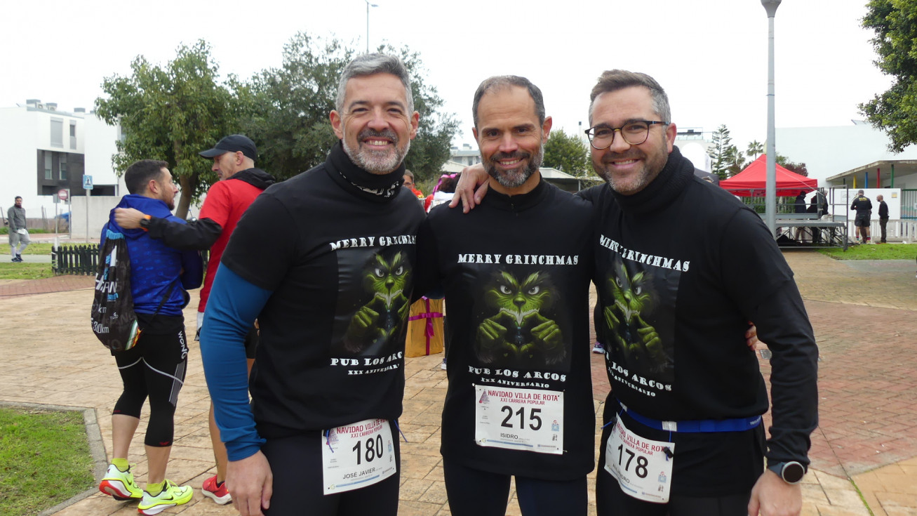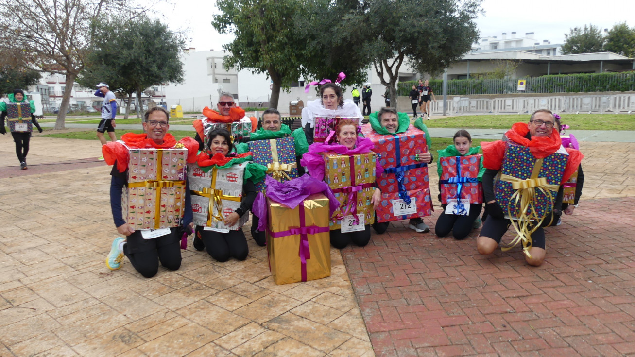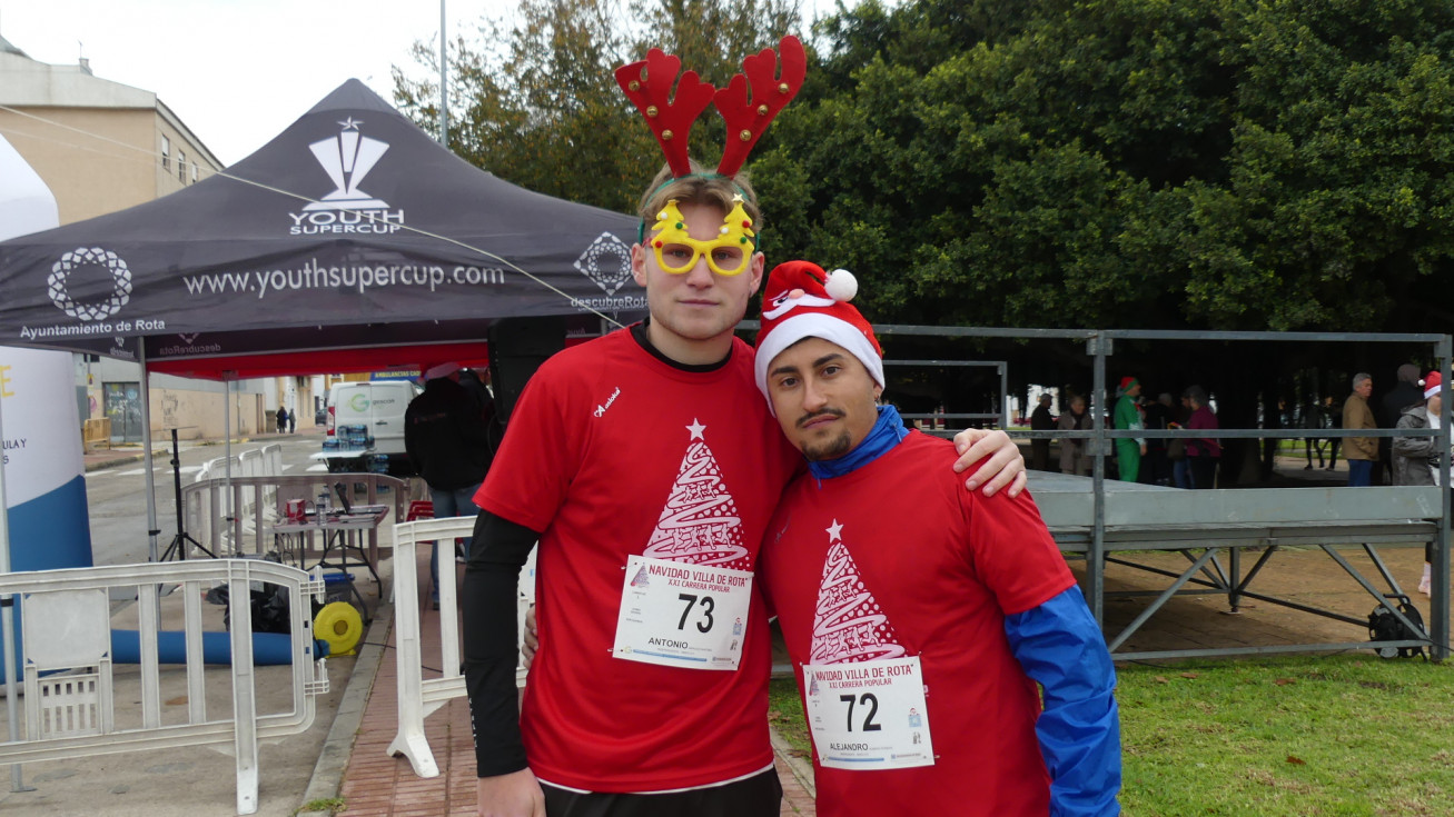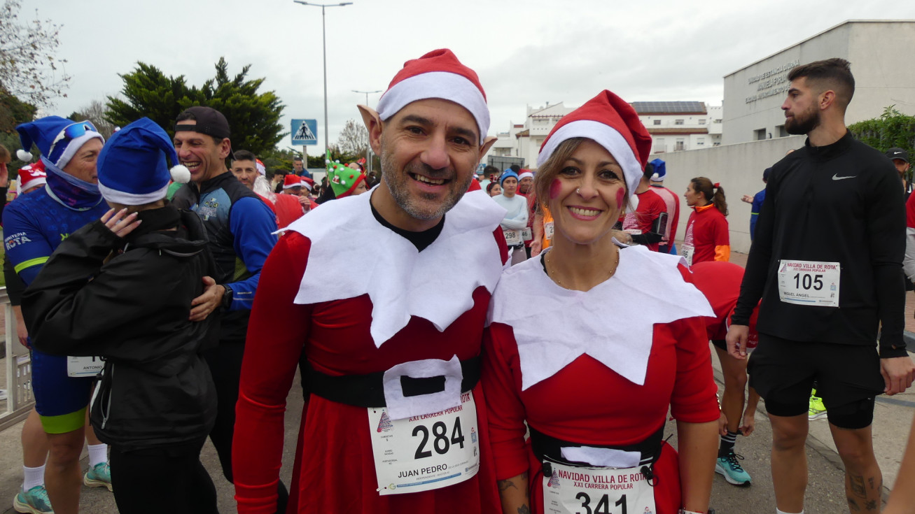 Como siempre, se han podido ver adornos navideños en gafas, gorros y hasta disfraces completos, de forma individual o en grupo, dando así el color propio a esta carrera que es la última que se celebra puntuable para el II Circuito de Carreras Populares de Rota y que al tener lugar en Navidad, anima a los participantes a lucir algún complemento. Los ha habido numerosos, como las cajas de regalo, en grupo como los niños de San Ildefonso de la Lotería de Navidad, los clásicos Papá Noel y hasta una original burbuja de champán.