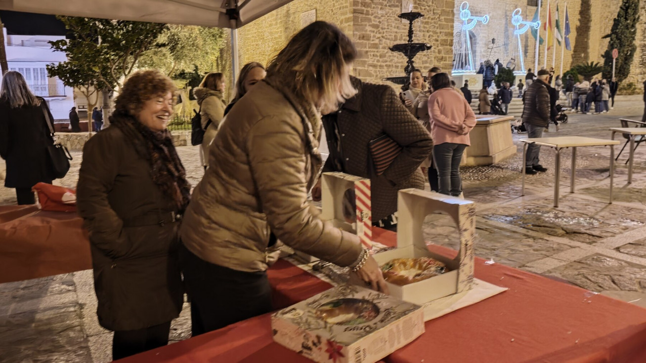 No hay mejor regalo en Navidad que la cara de los pequeños, por eso, se aguantan largas colas e incluso frío. Para aquellos que han querido endulzarse la tarde, desde la Hermandad del Rosario en la iglesia de la O, se han vendido porciones de roscón de reyes y chocolate caliente, que ha hecho más llevadera la espera.