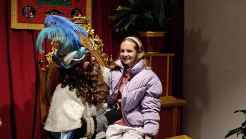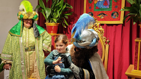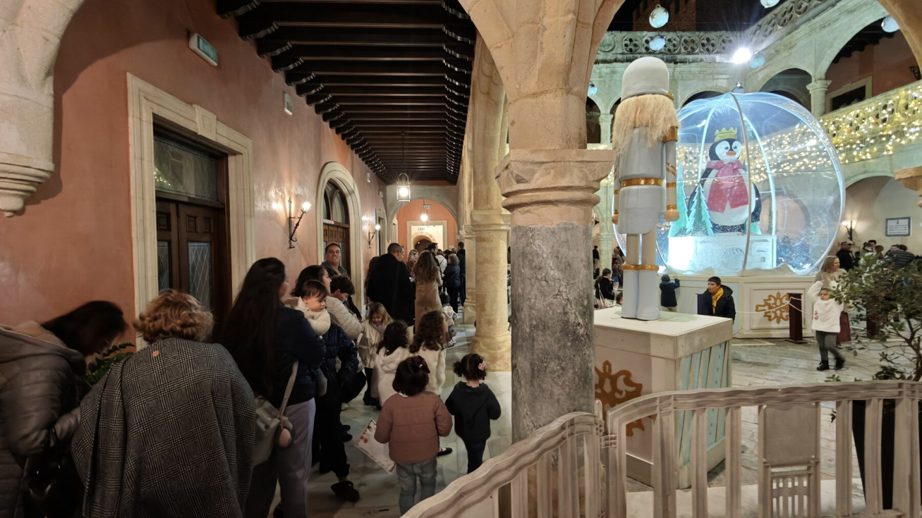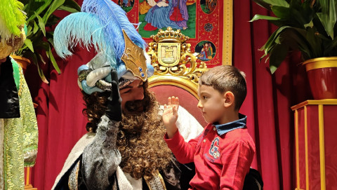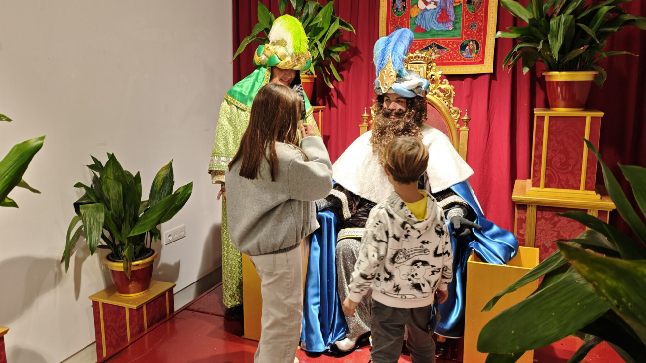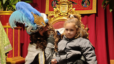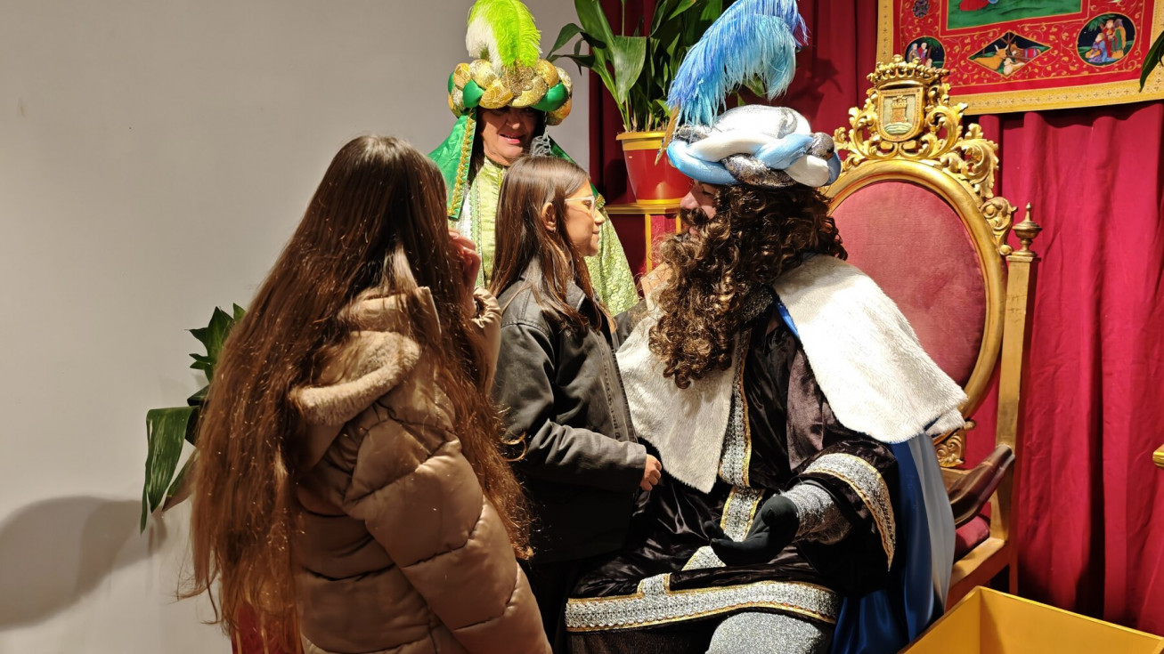Tras el pasacalle con el que ha recorrido la localidad lanzando pelotas y caramelos, el emisario de Sus Majestades ha ocupado el trono en el salón preparado en el Castillo de Luna, donde una larga cola de niños esperaban para verlo y entregar su lista de juguetes y deseos para el próximo 5 de enero.